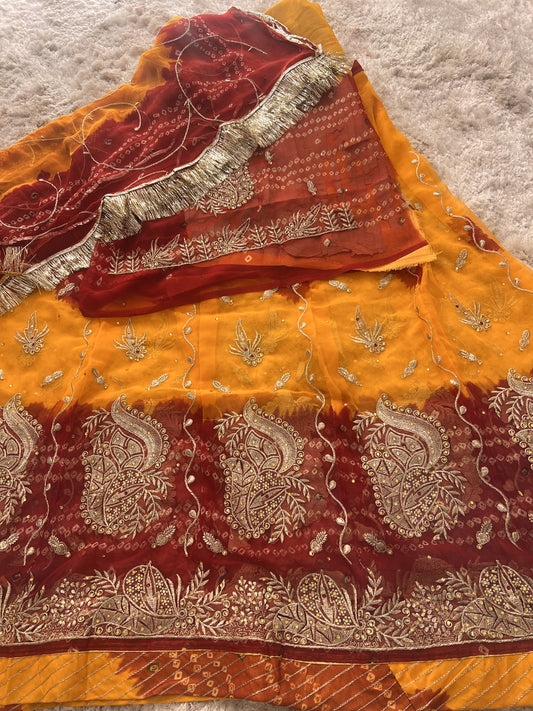Pure georgette, Gota and Stone Handwork Bridal Poshak