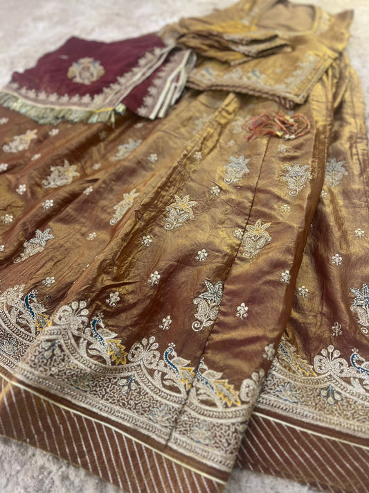 Golden brown Designer Poshak with Baareek Kadhayi (Stitched)