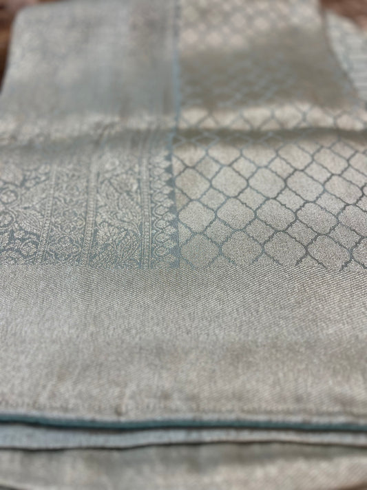 Silver and Pastel Blue Pure Giraffe Silk Saree