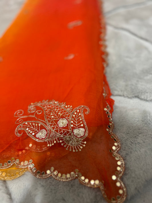 Pure chiffon Shaded Pita and Mirror Work, Sari with Pure Crêpe Yellow Mirror Work and Pita Work Blouse Piece