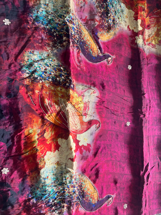 Pure Crepe Peacock Design Saree