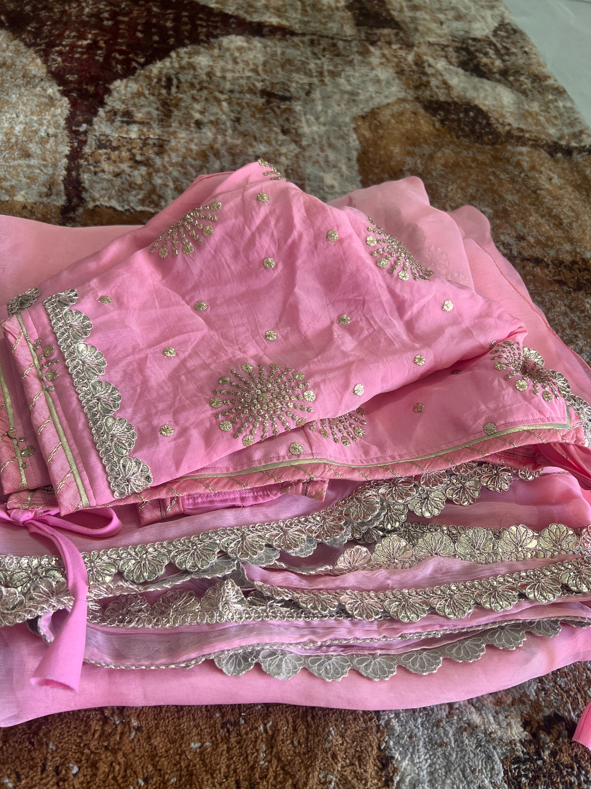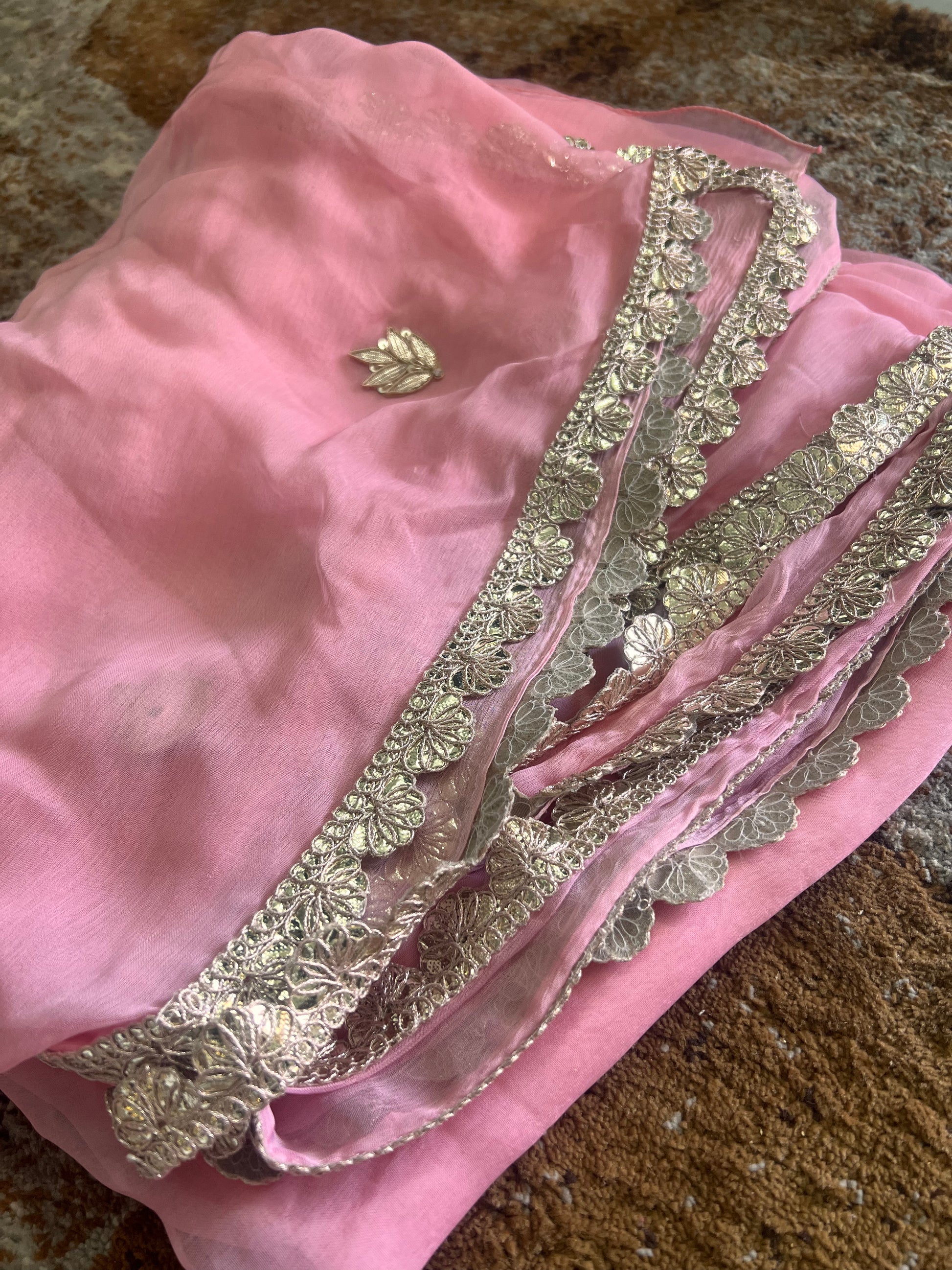 Baby Pink Colour Chiffon Saree with Gota work on it with Beautiful Kanchili Blouse