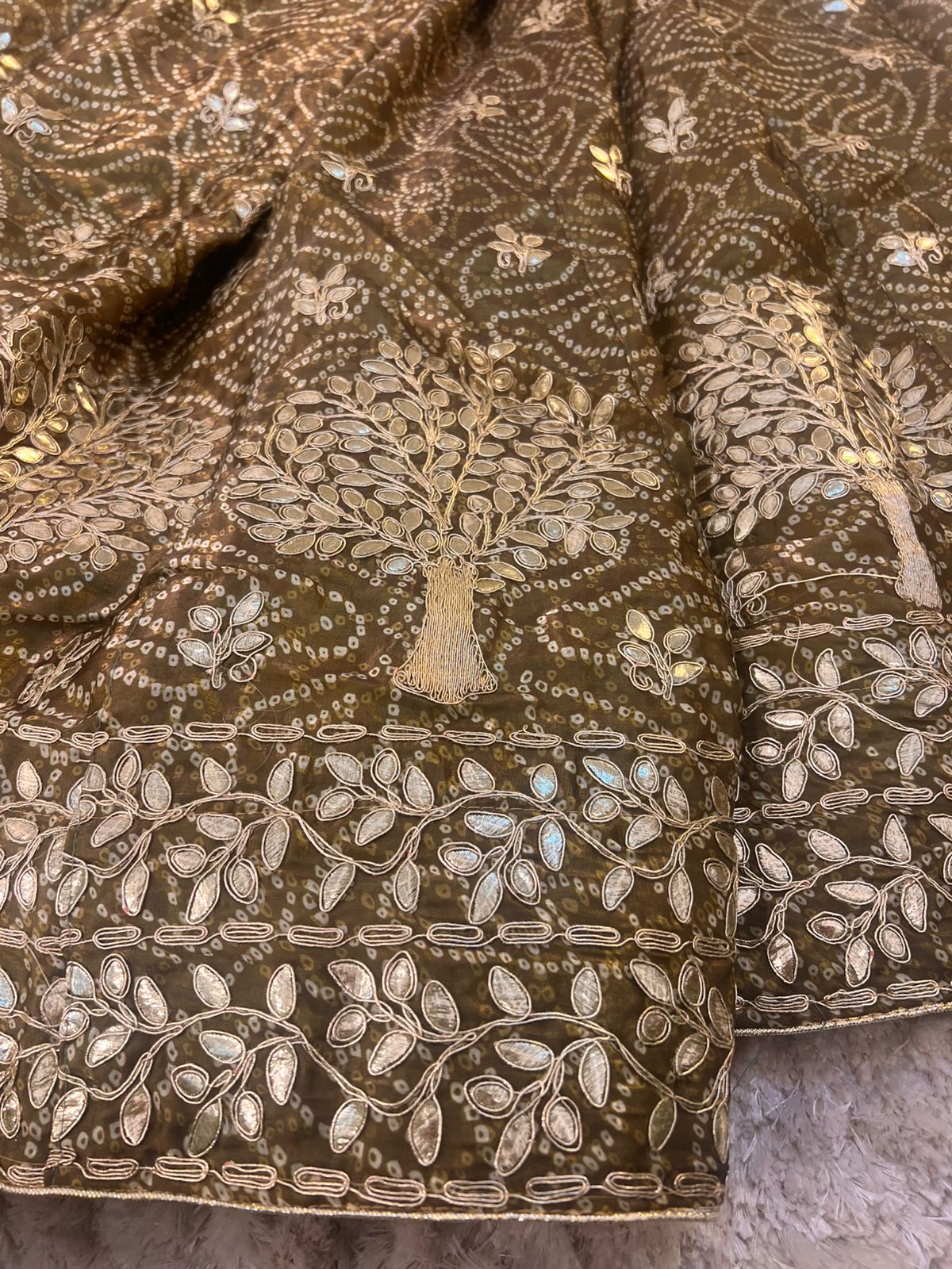 Bandhini with Gota Patti Work Full Ghera Mehendi Green Poshak (Unstitched)