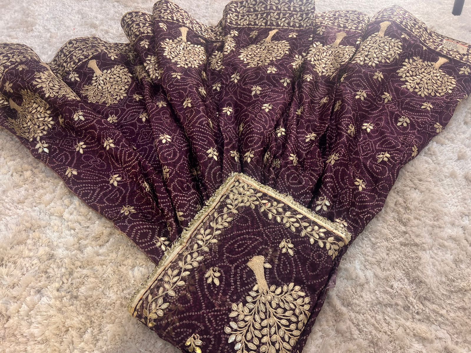 Bandhini with Gota Patti Work Full Ghera Purple Poshak (Unstitched)