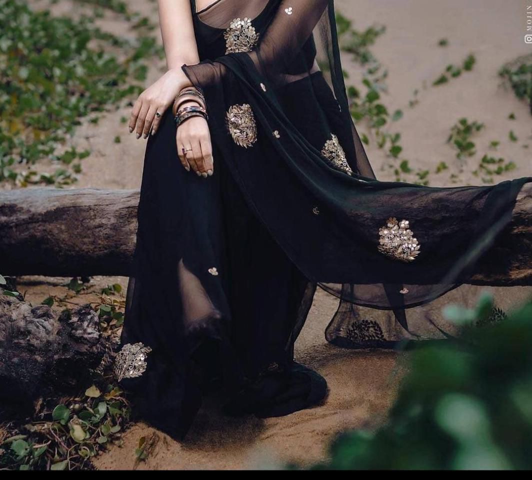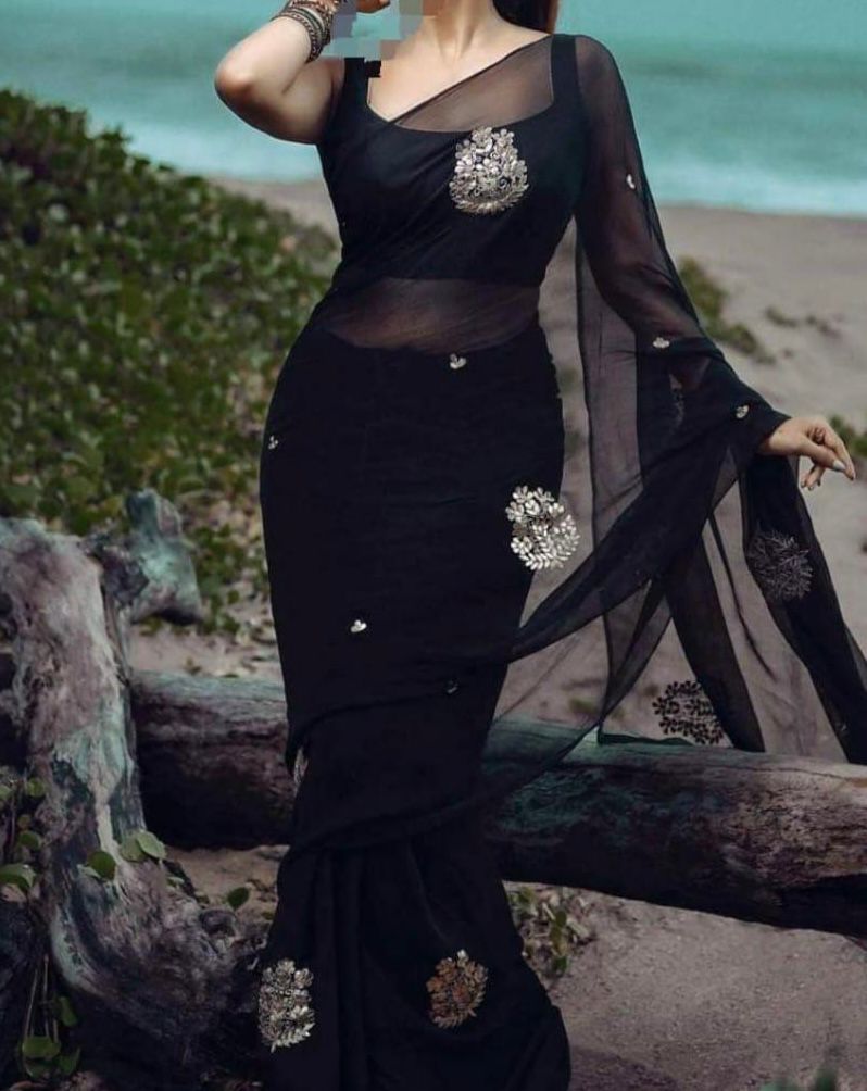 Beautiful Black Chifffon Saree, Gota Work all over the Saree with Same Fabric Blouse Piece