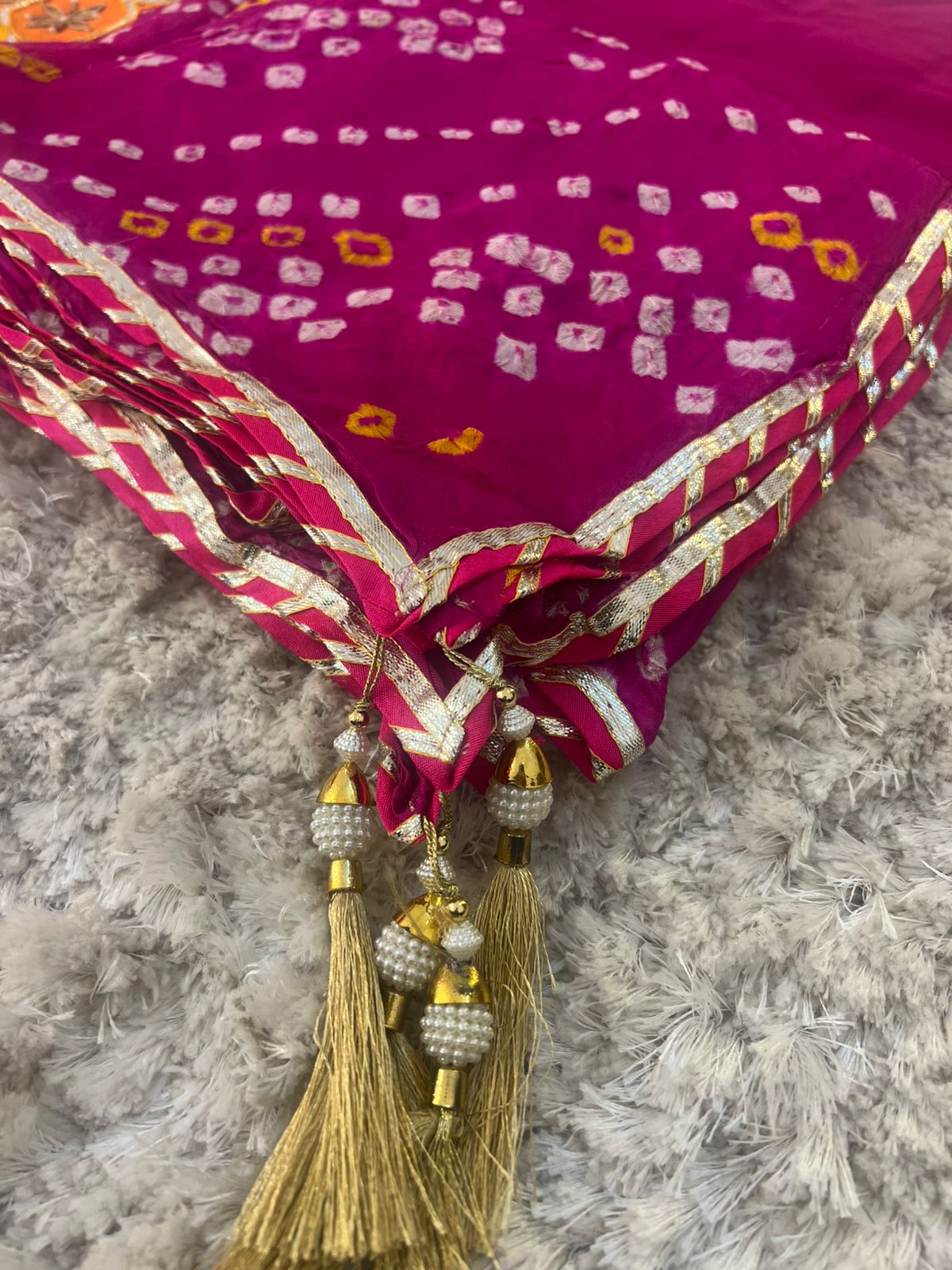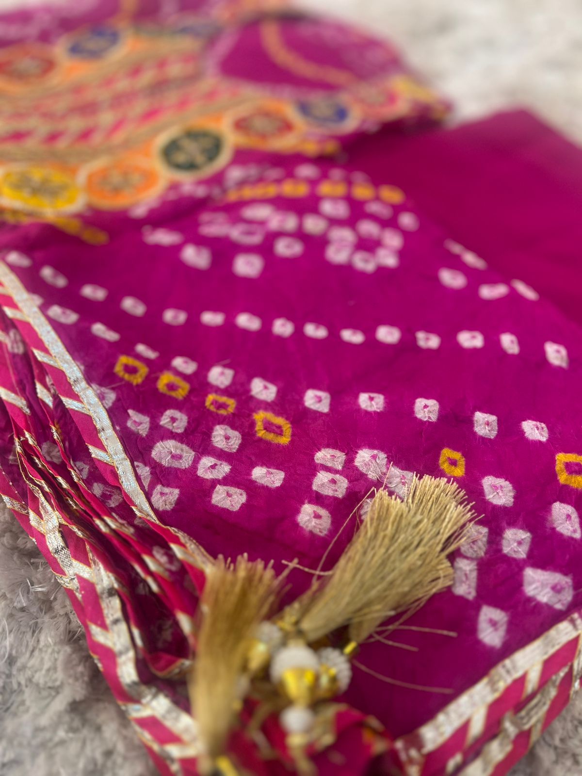 Beautiful Designer Handcrafted Bandhini Suit (Unstitched)