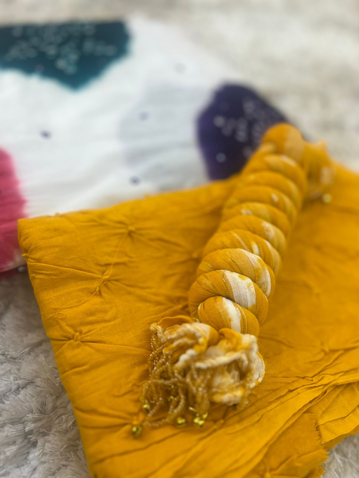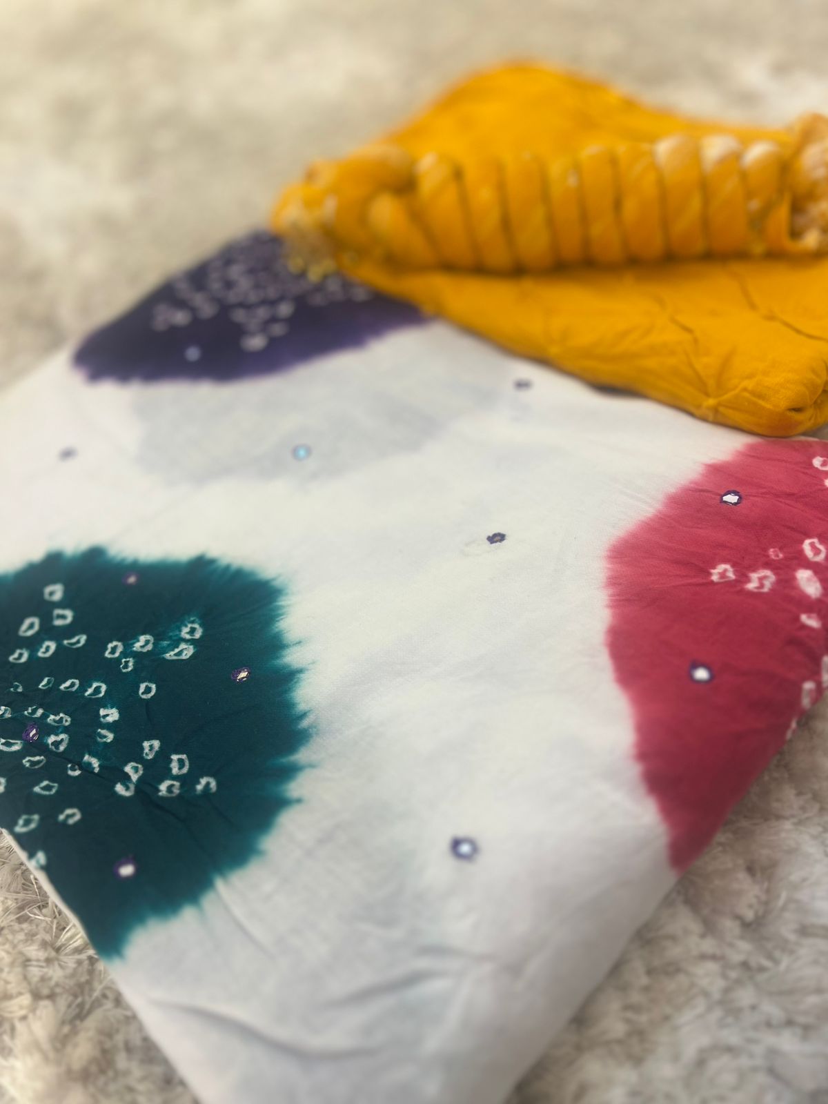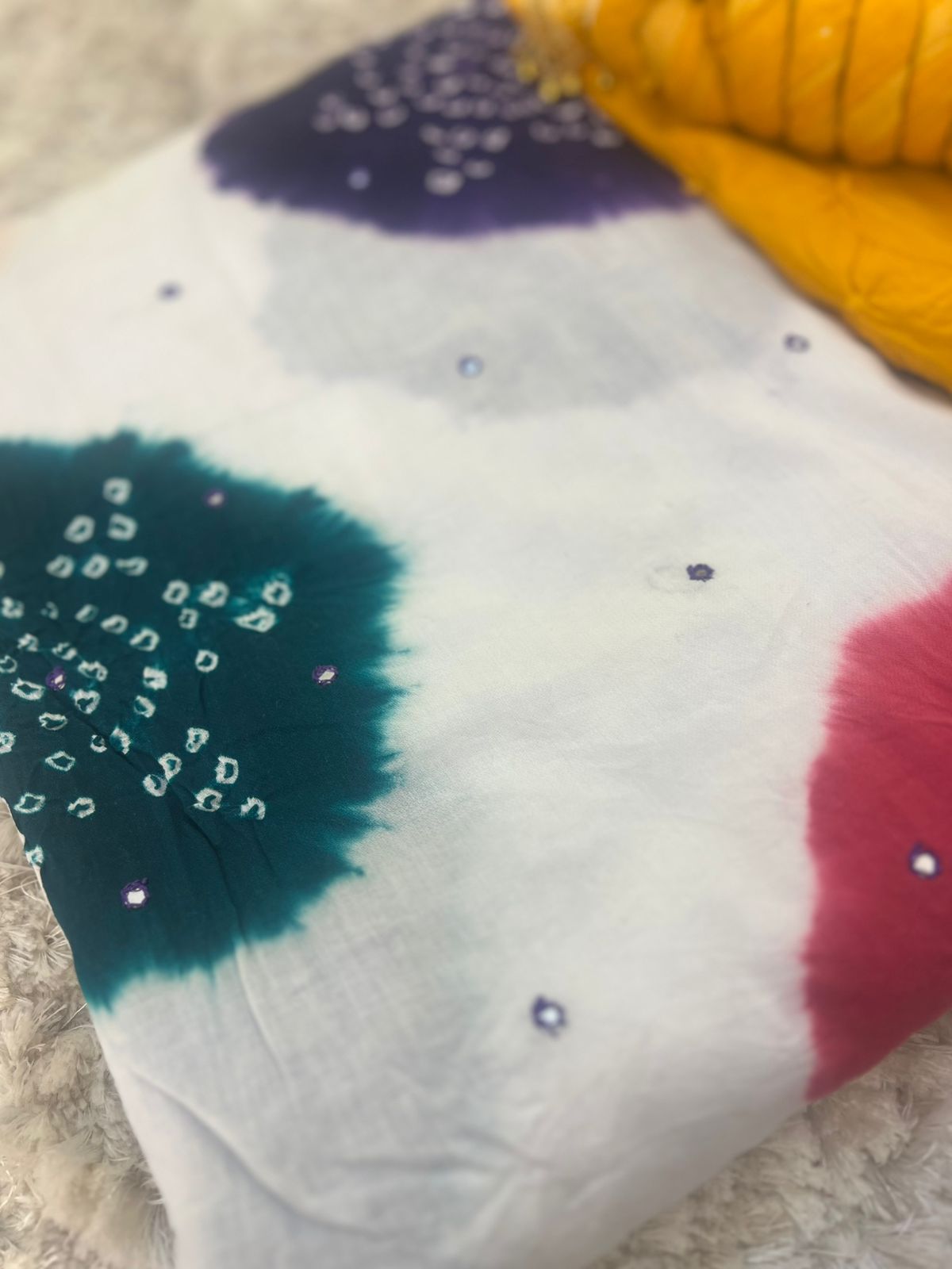 Beautiful Designer Handcrafted Bandhini Suit (Unstitched)