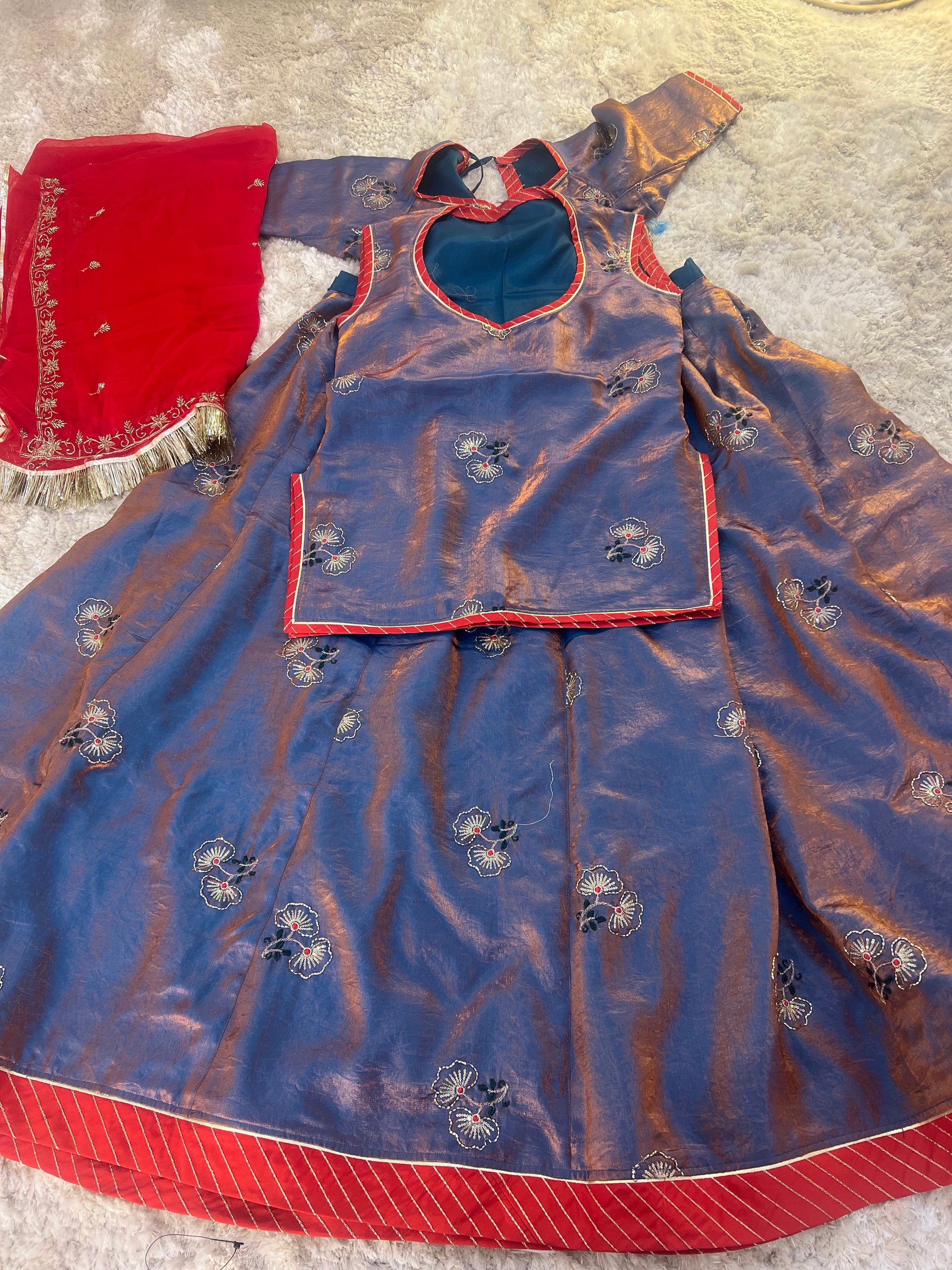 Where Heritage Meets Shimmer-Exquisite Kadhai Work and Delicate Sequine Woven into One Stunning Poshak