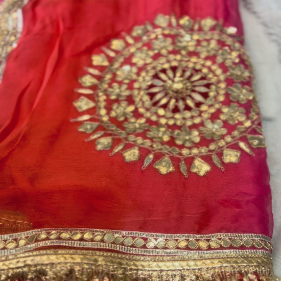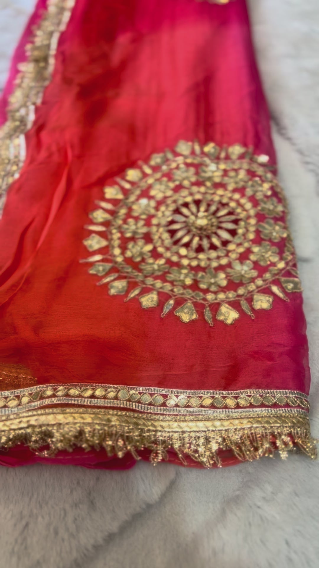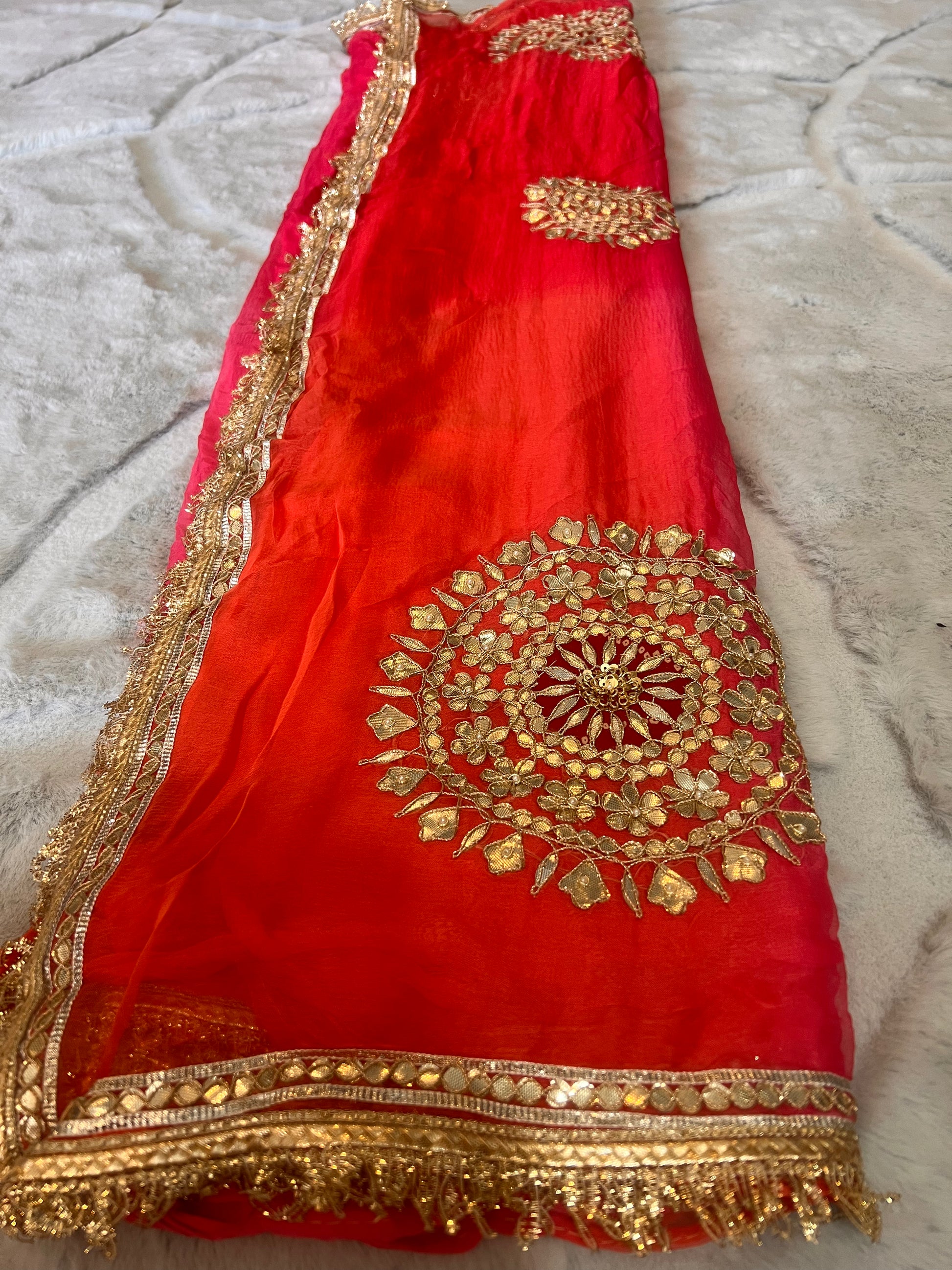 Beautiful Pure Chiffon Shaded Bandhani and Gota Work Saree with Unstitched Blouse