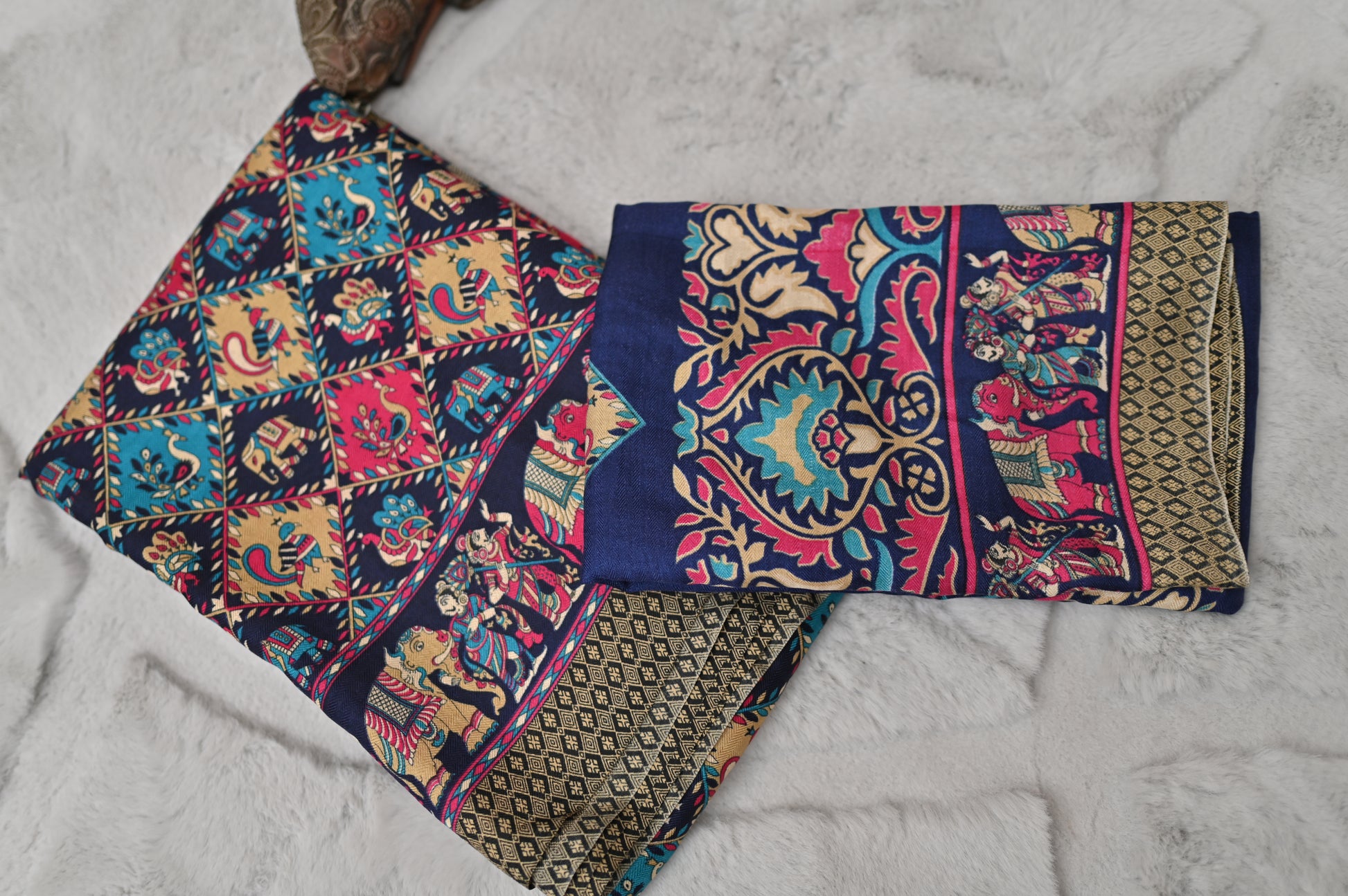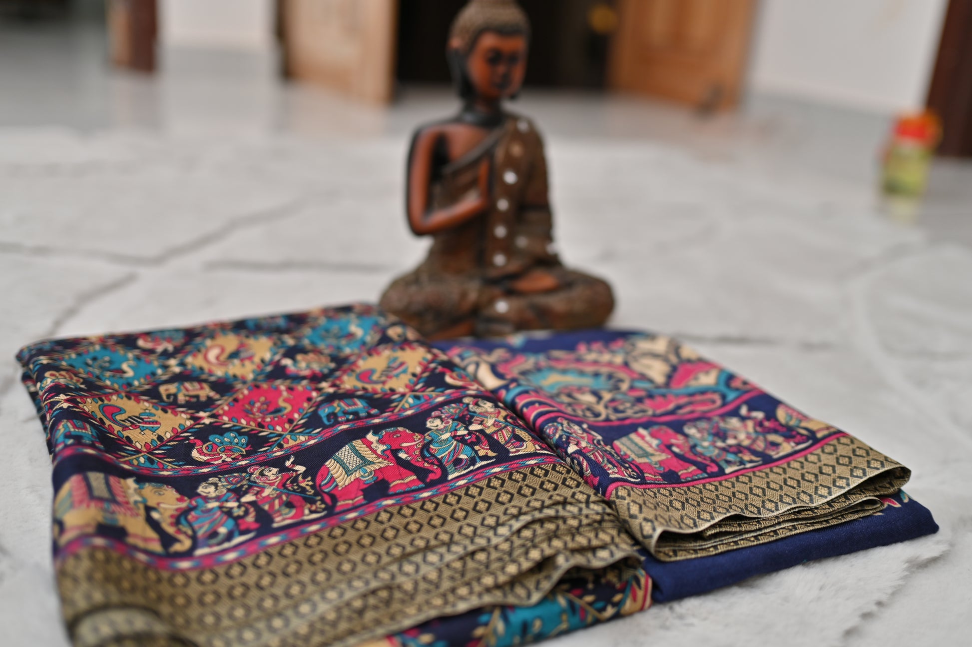 Blue Pashmina Silk Saree and Shawl Combo with Unstitched Blouse