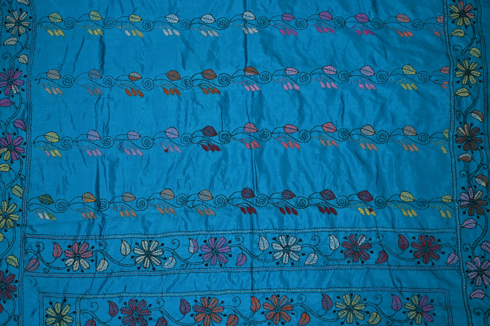 Blue Silk Kaatha Work Saree