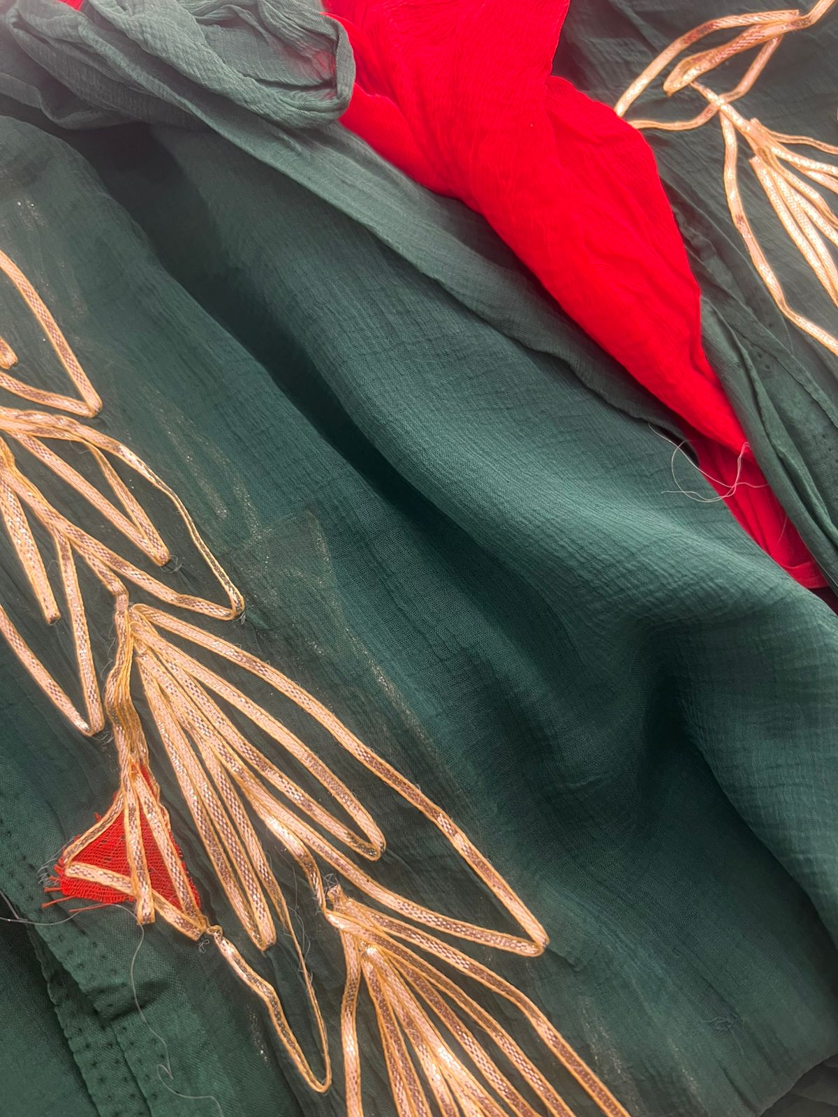 Bottle Green Gota Work Chiffon Saree with Red Blouse Piece