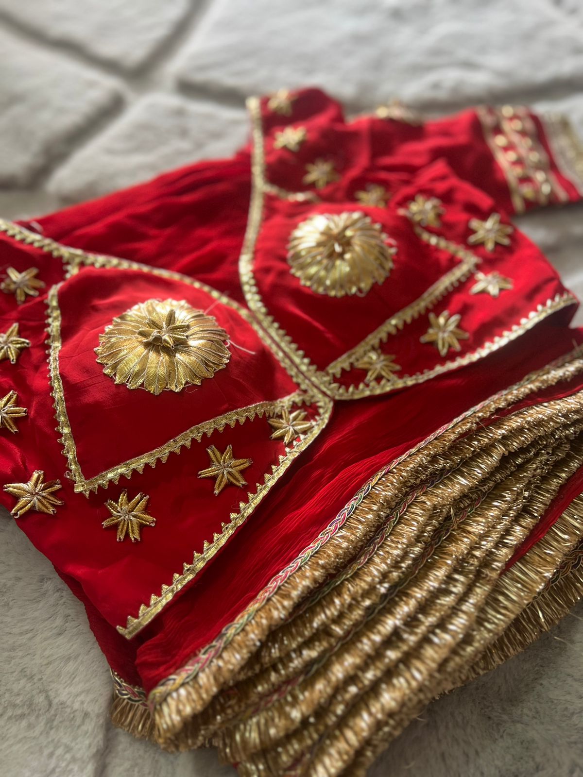 Designer Kanchli Blouse with Soft Chiffon Red Saree with Traditional Border