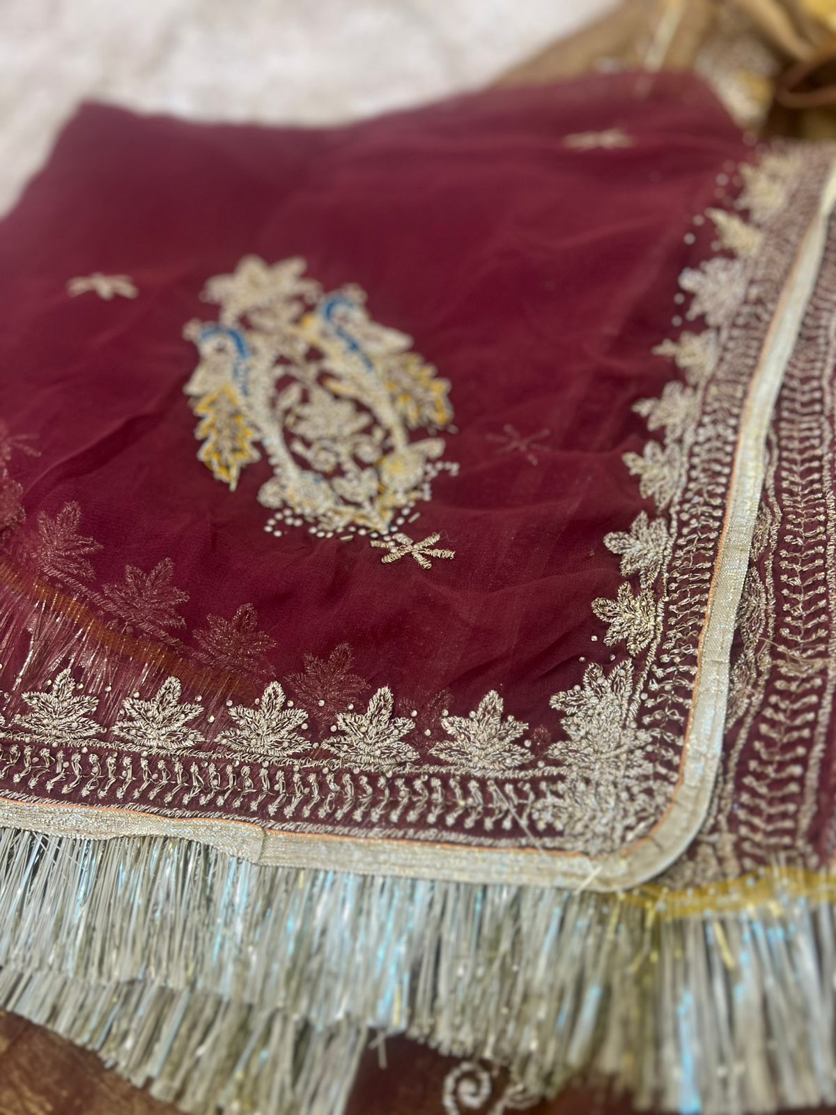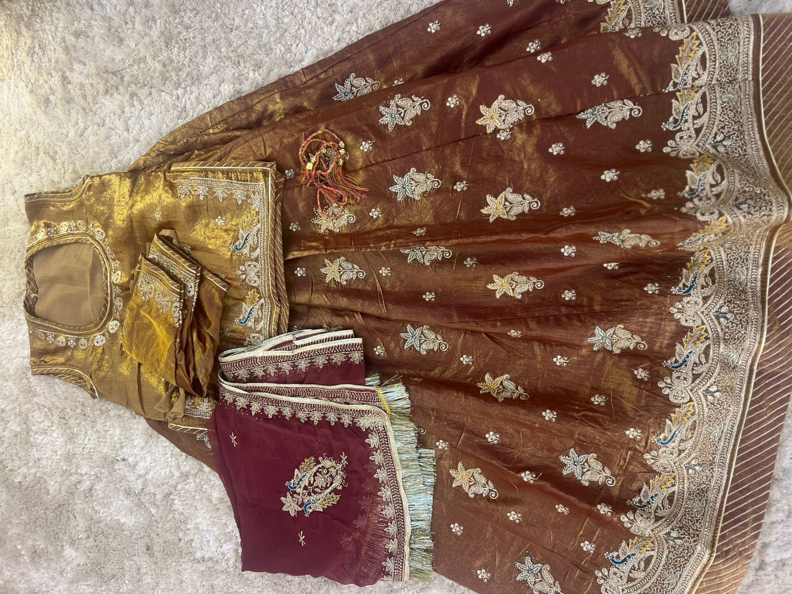 Golden brown Designer Poshak with Baareek Kadhayi (Stitched)
