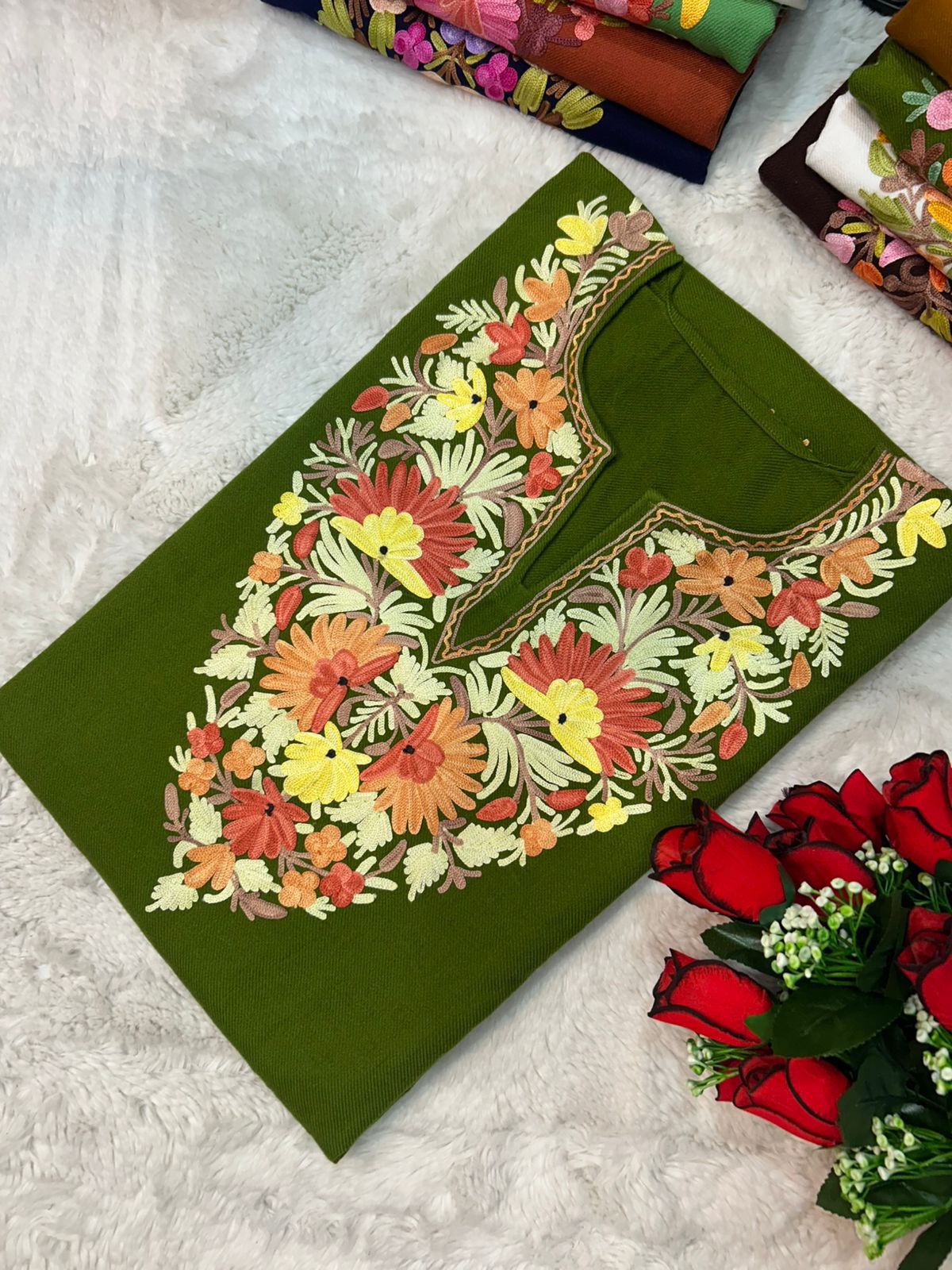 Embrace timeless elegance with this Green Kashmiri Ariwork Pheran, meticulously handcrafted to showcase authentic Kashmiri needlework. The rich green fabric serves as a perfect canvas for intricate Ari embroidery, combining tradition with enduring style. Designed for warmth and comfort, this garment offers a sophisticated silhouette ideal for cultural festivities and formal occasions. Elevate your wardrobe with a piece that reflects artisanal craftsmanship and heritage excellence.
