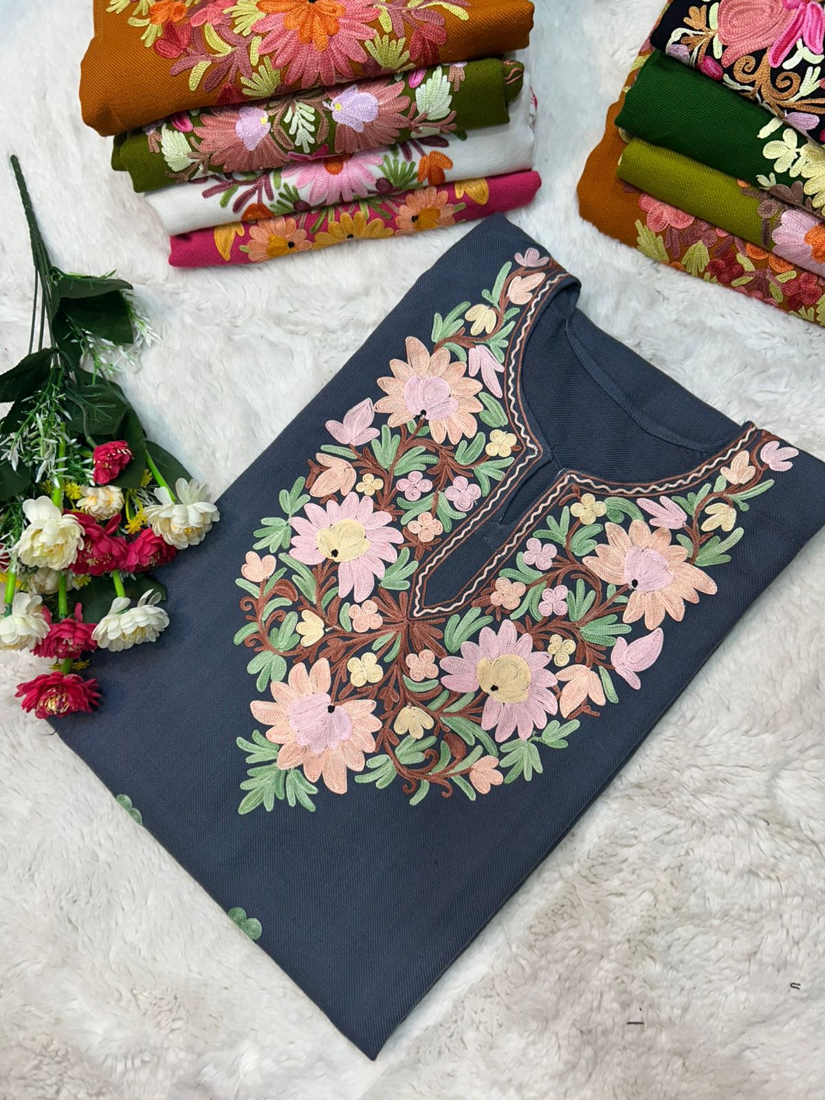 Presenting super Cashmilon wool Ariwork Pheran with beautiful colours 🌸