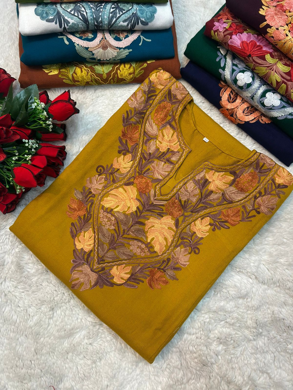 The Kashmiri Ariwork Pheran is a traditional garment distinguished by its intricate hand-embroidered Ariwork, showcasing exquisite craftsmanship rooted in Kashmir's rich cultural heritage. Crafted from premium, comfortable fabric, this pheran offers warmth and elegance, making it ideal for colder climates. Its detailed embroidery enhances its aesthetic appeal, reflecting timeless artistry while providing a sophisticated and authentic look. Perfect for those who appreciate durable, artisanal fashion with historical significance.
