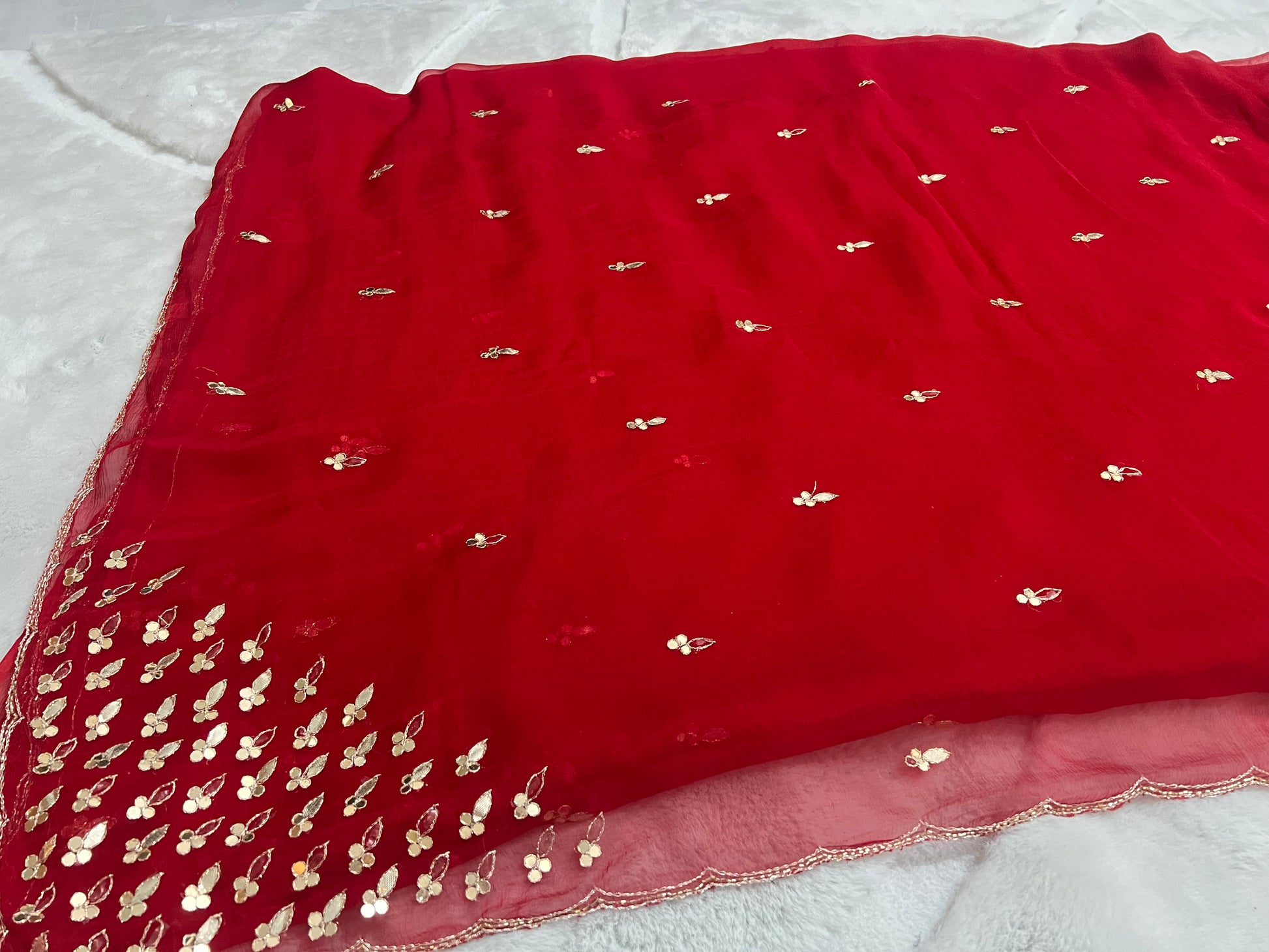Red Semi-Chiffon Beautiful Gota Work Sari with Same Blouse Piece