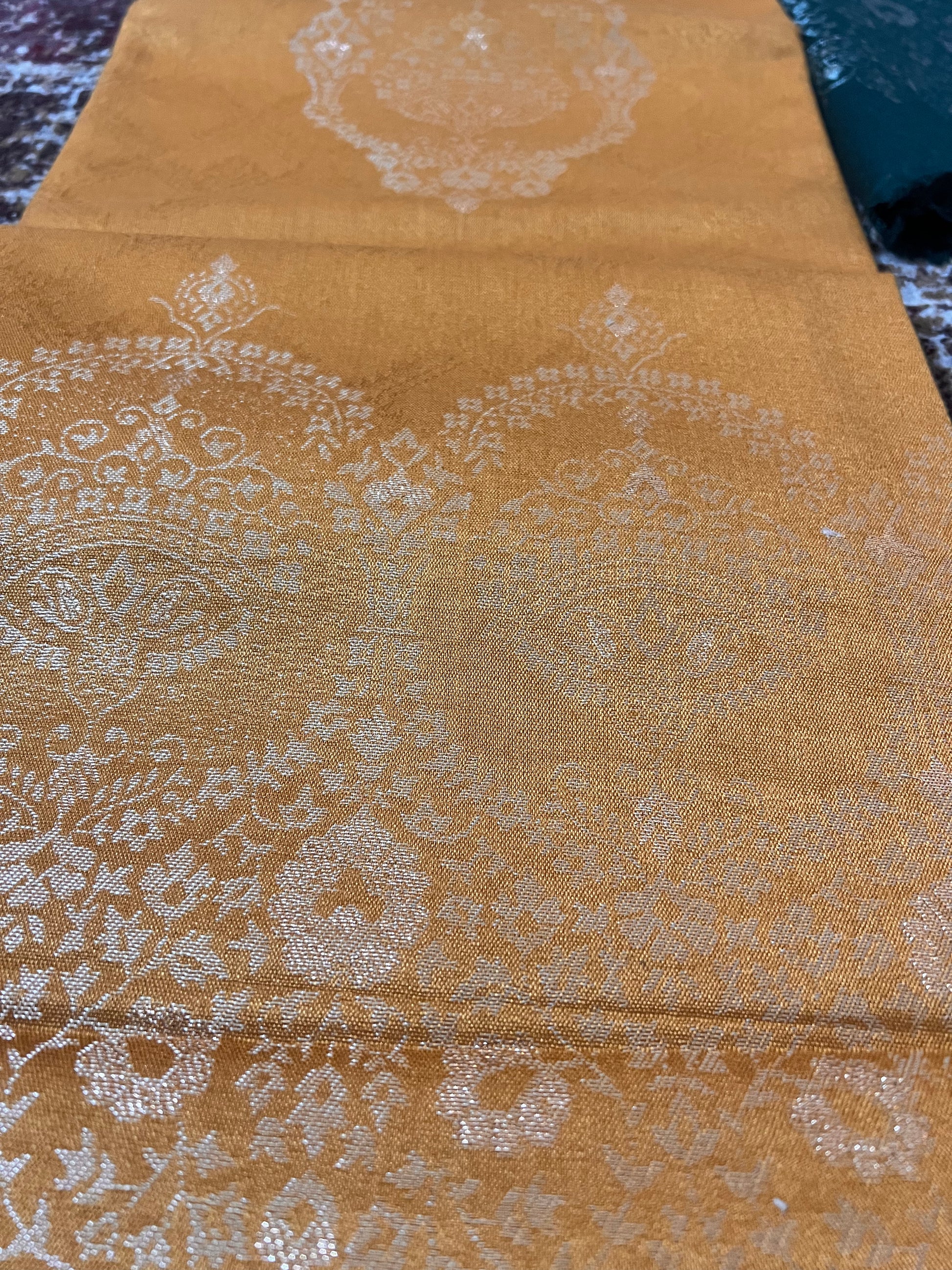 Mustard Colour Kurta and Bottle Green Pyjama and Shawl (Unstitched)
