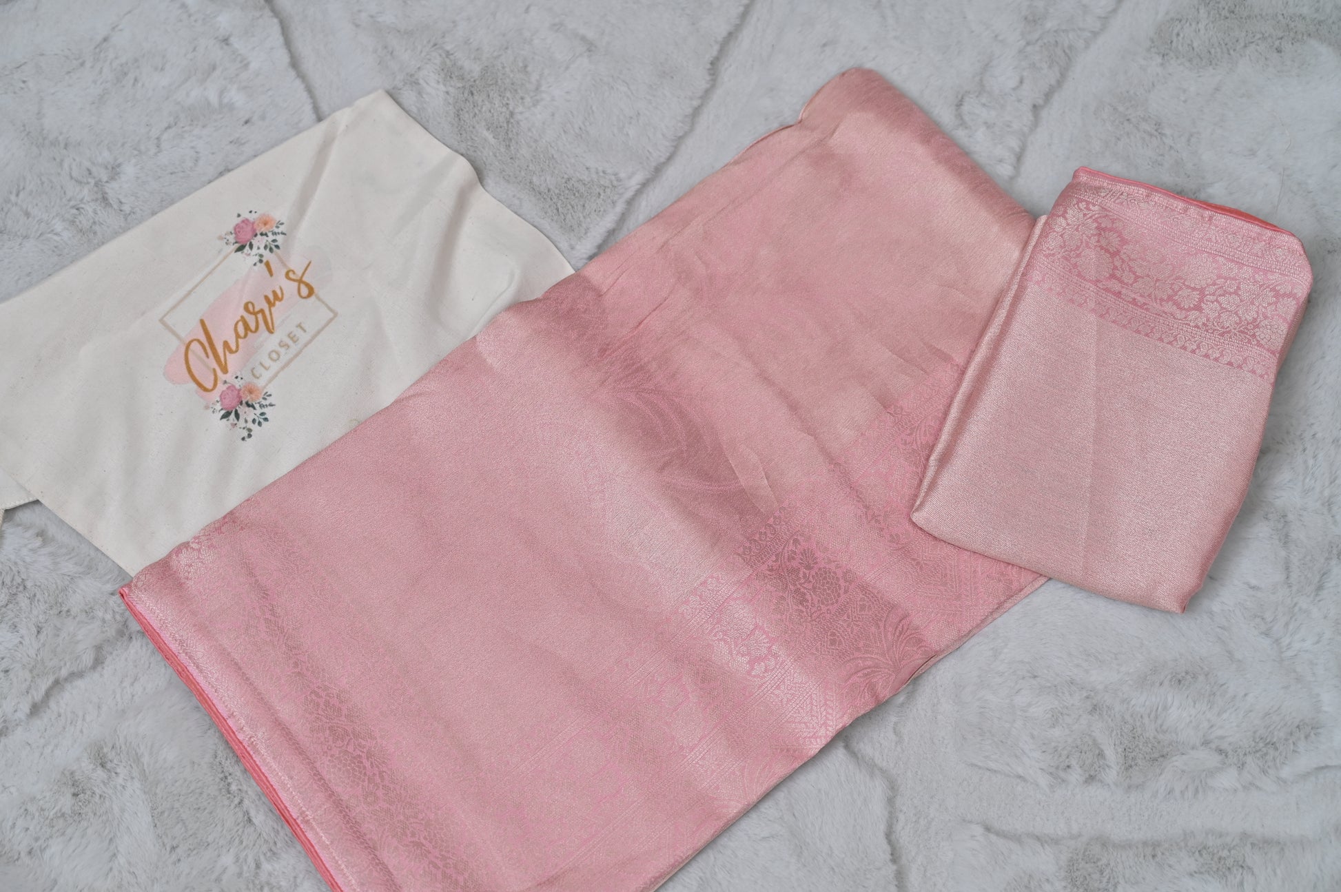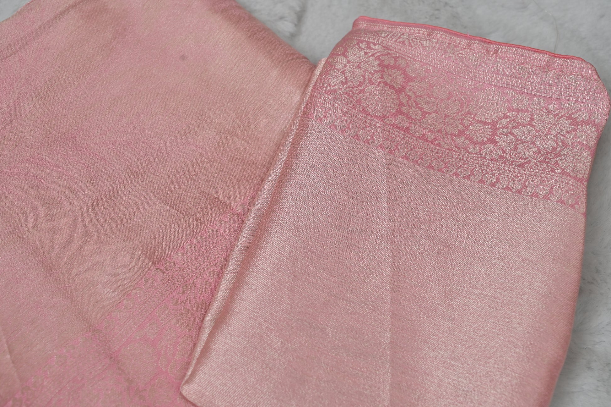 Baby Pink Pure Giraffe Silk Saree with Zari Weaving