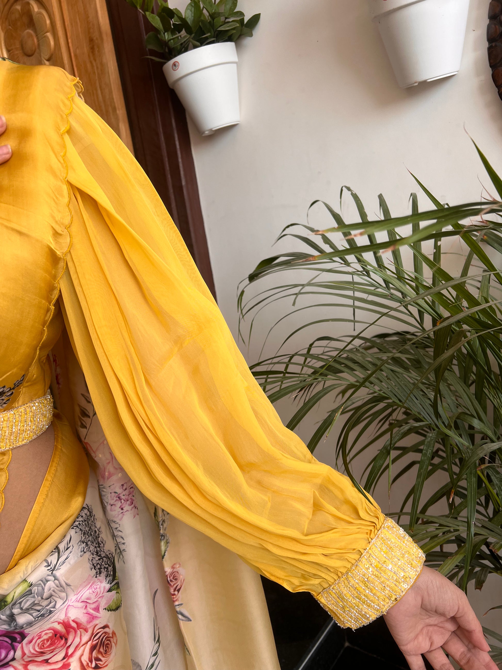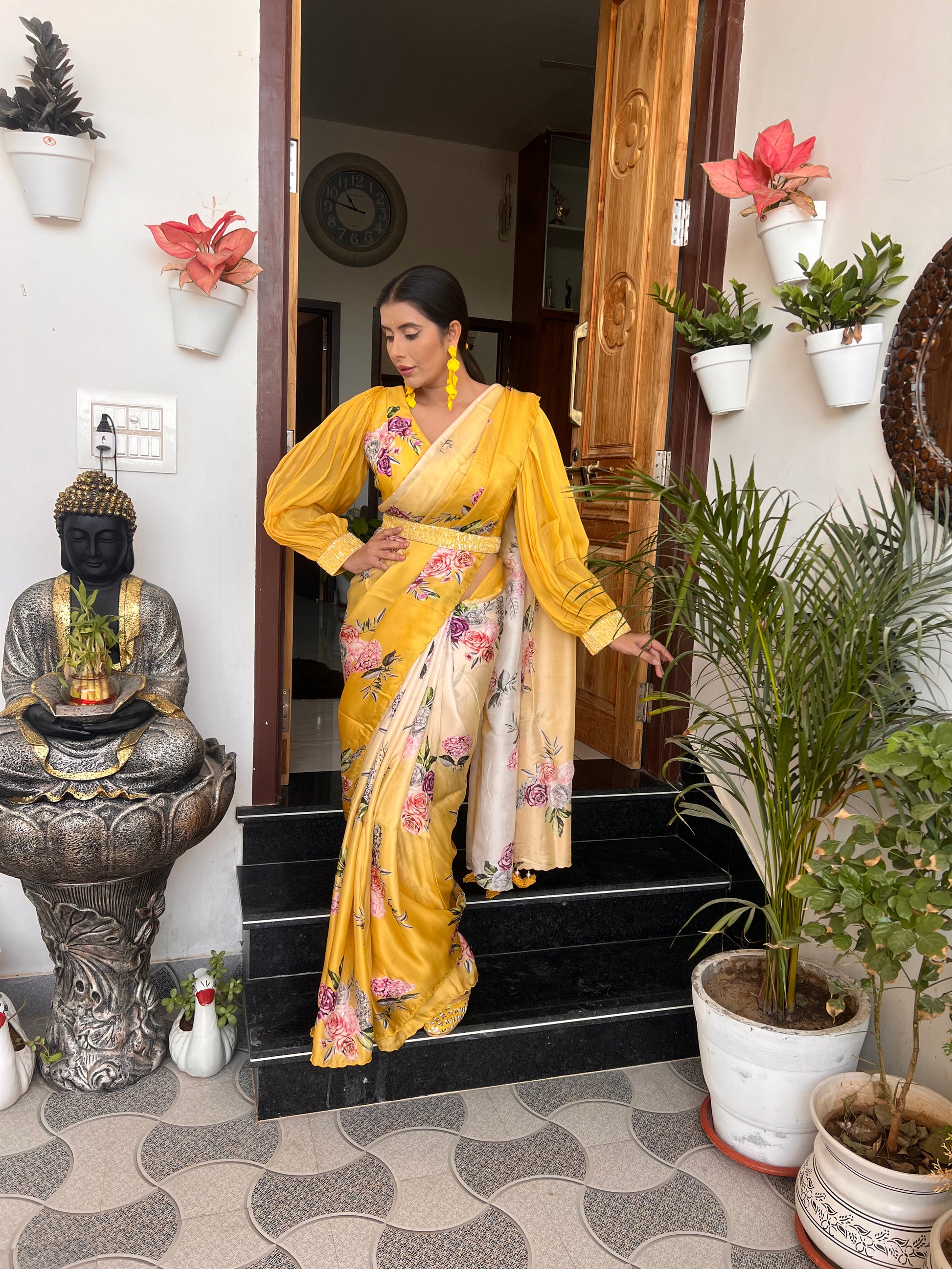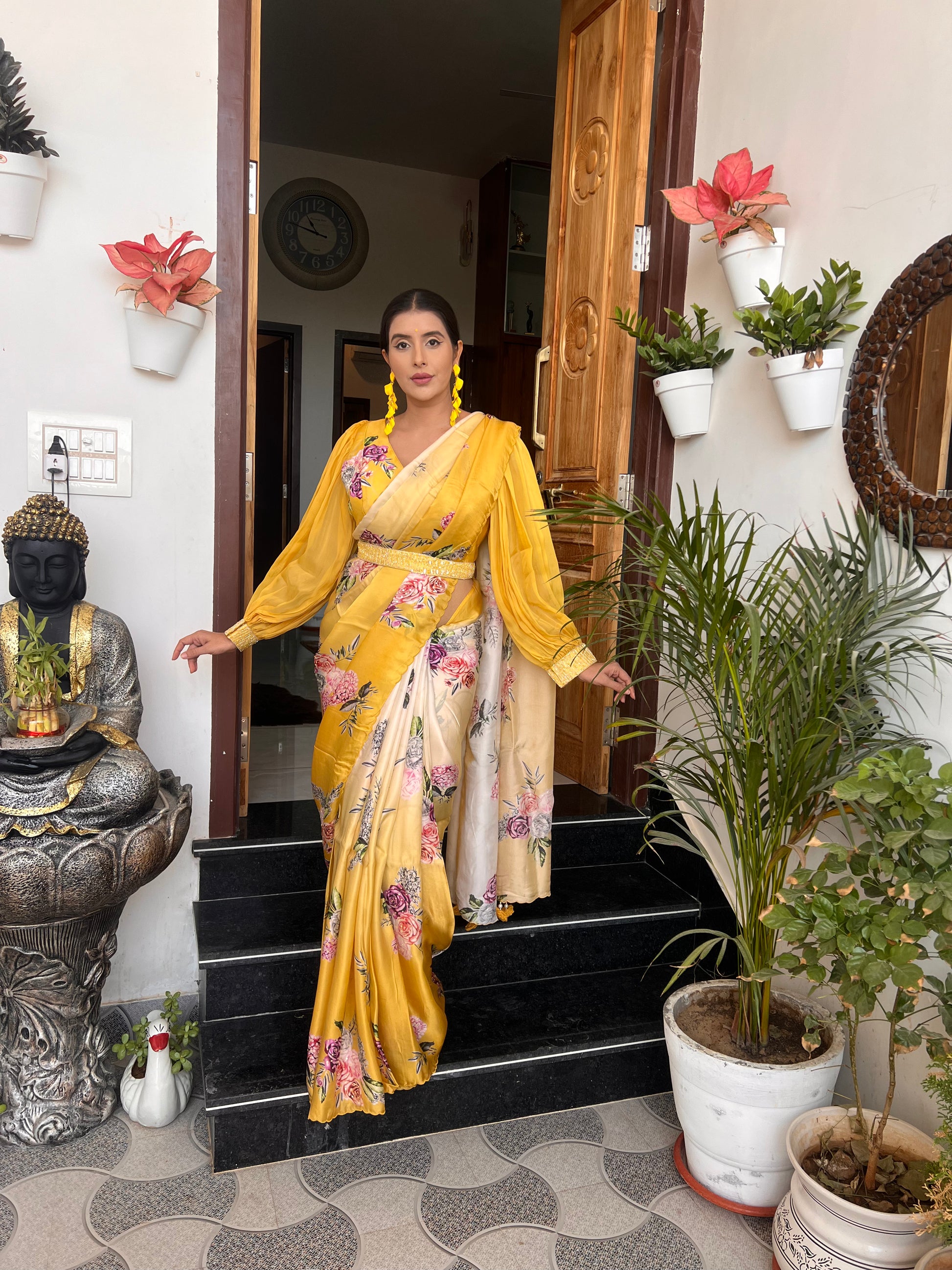 Printed Modal Silk Saree with Designer Blouse and Beautiful Waist Belt