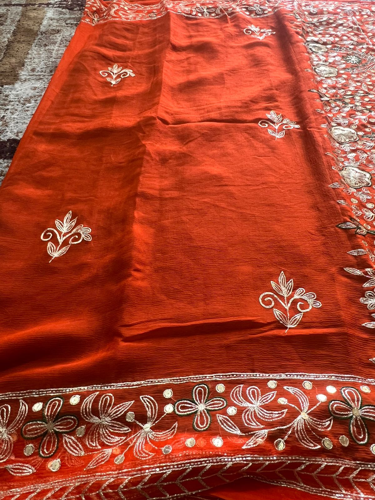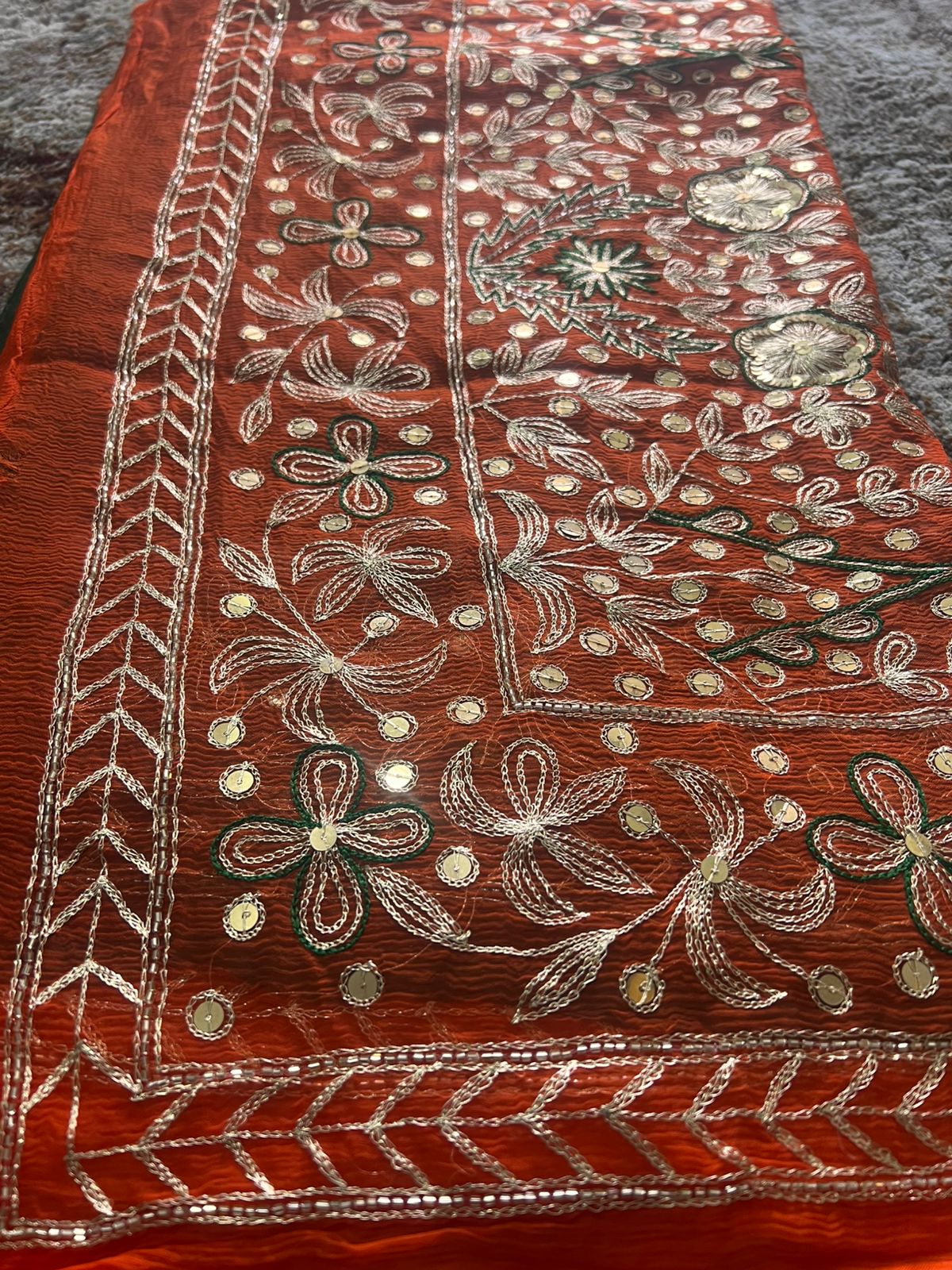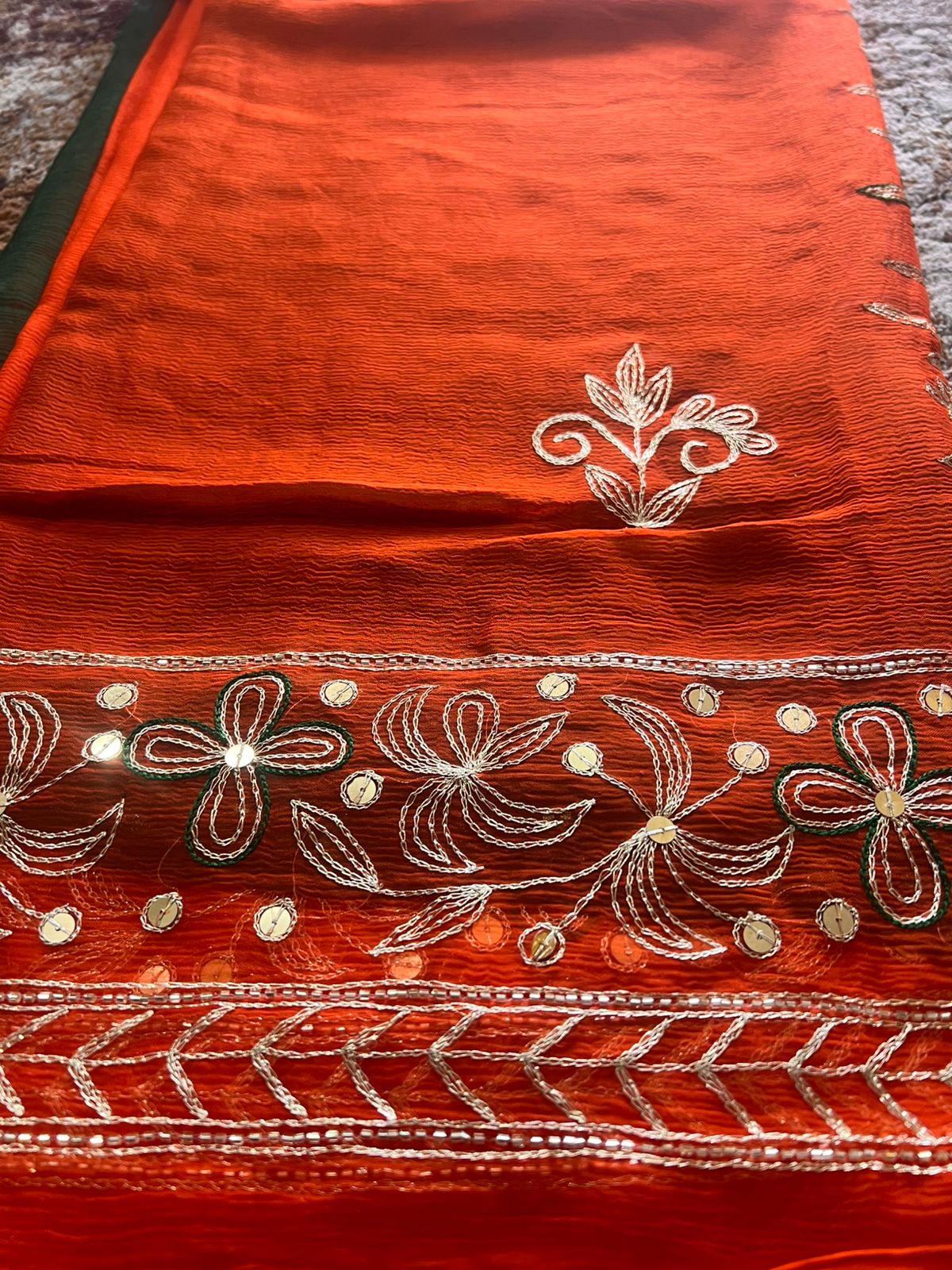 Pure Chiffon Heavy Peta work Rajpooti sari with Pure Chiffon Green Peta work Blouse
