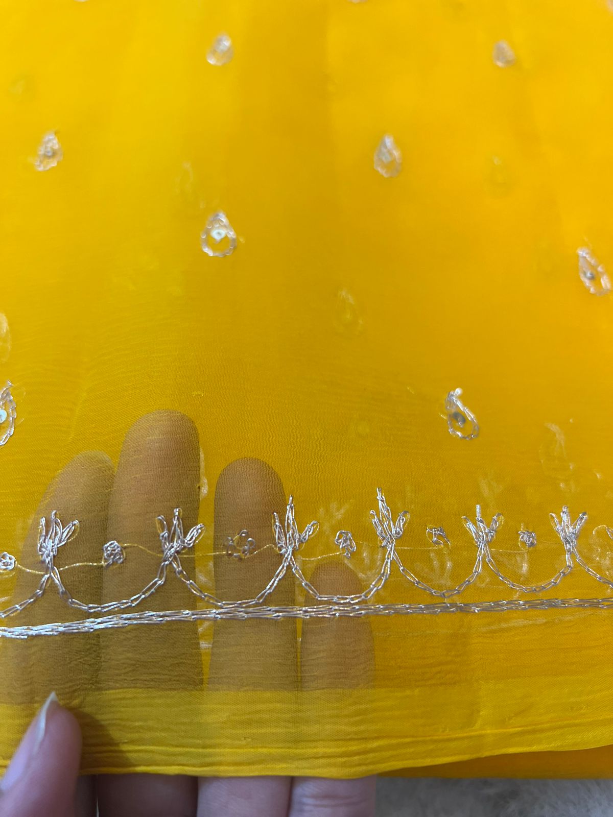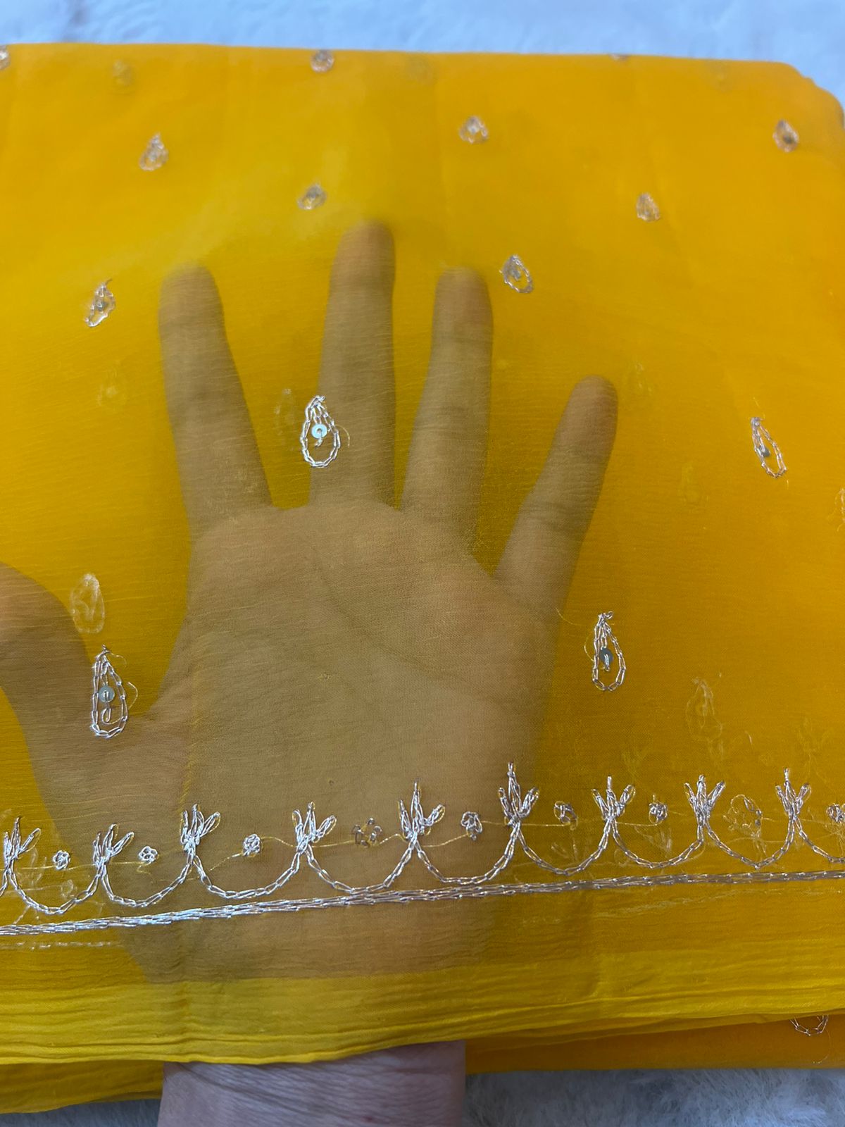 Pure Chiffon Peta Work Rajwadi Yellow Saree