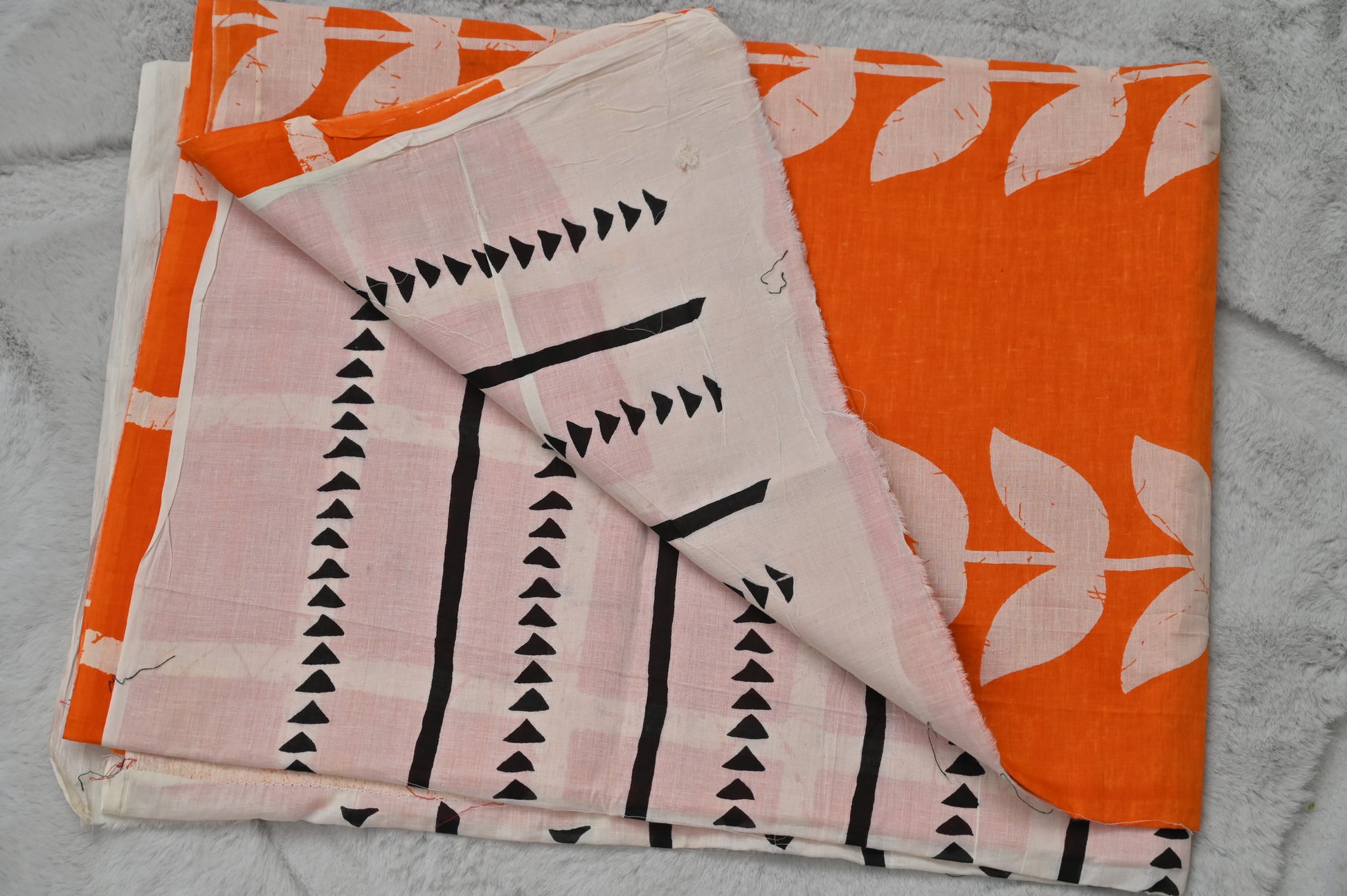 Pure Cotton Orange and White Saree with Unstitched Blouse