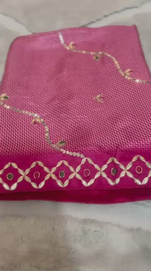 Pure Crêpe Designer Saree with Mirror and Gota work and Magenta Pink Heavy Work Blouse Peice