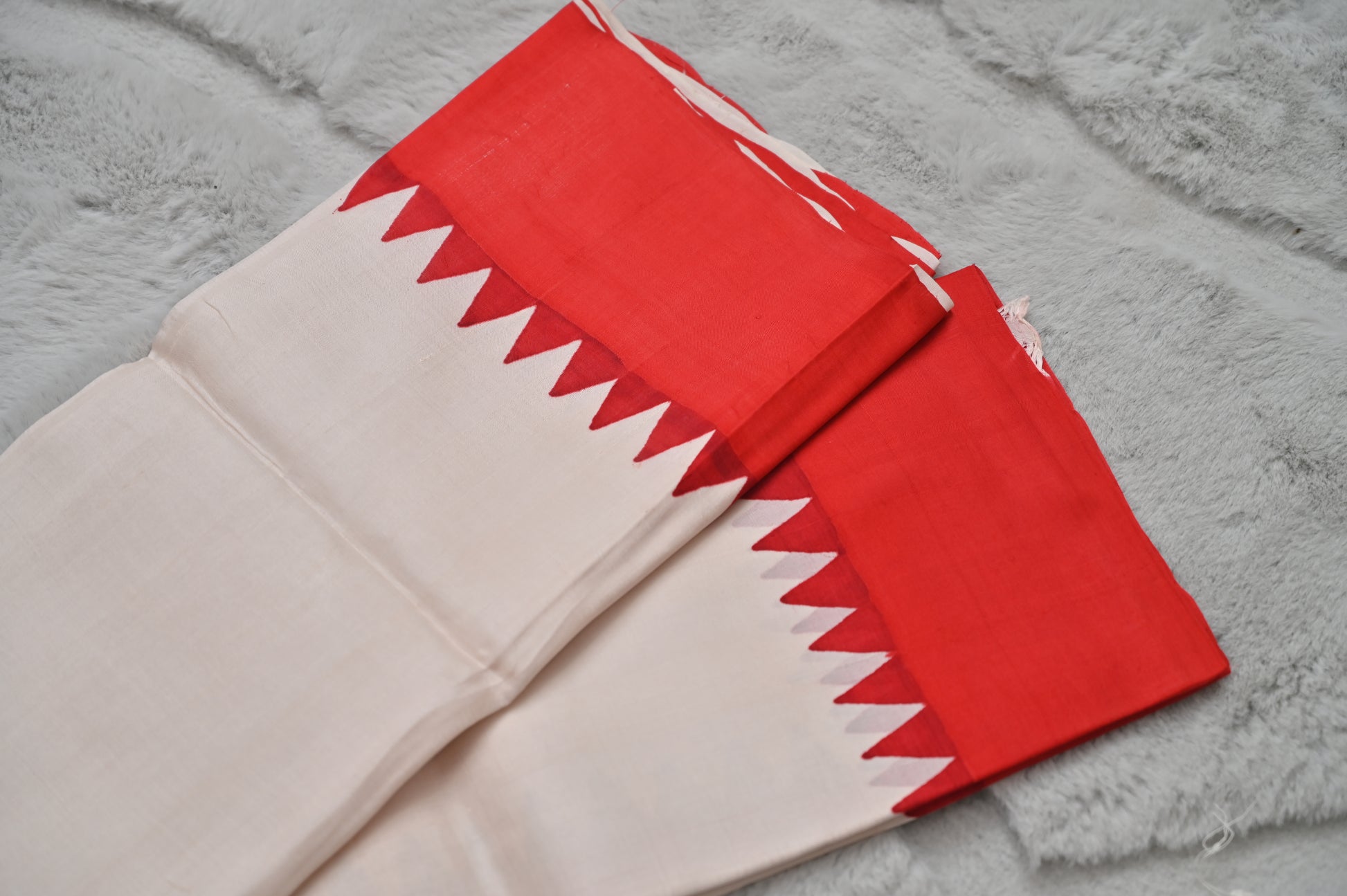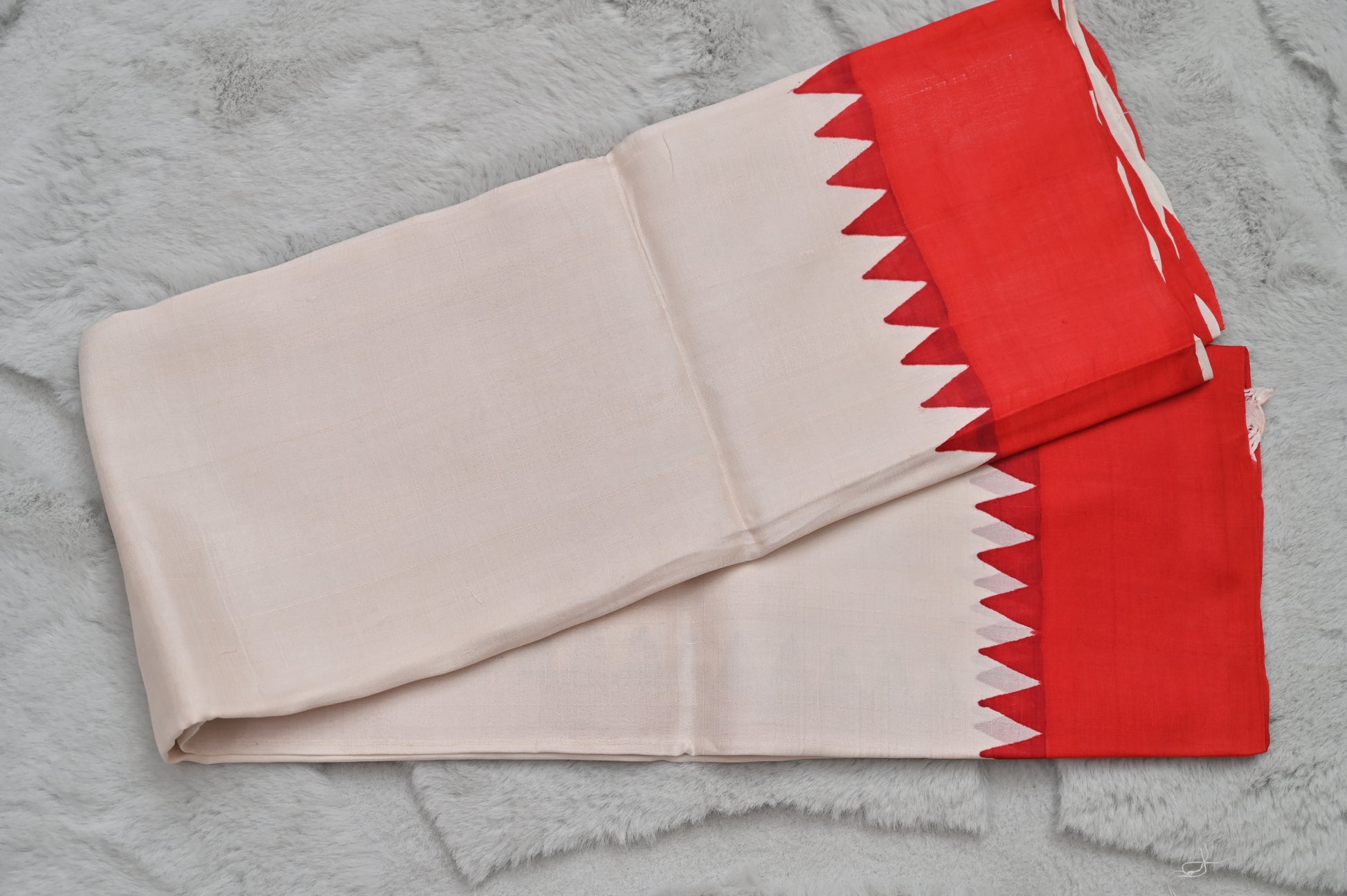 White and Red Pure Tussur Silk Saree with Unstitched Blouse