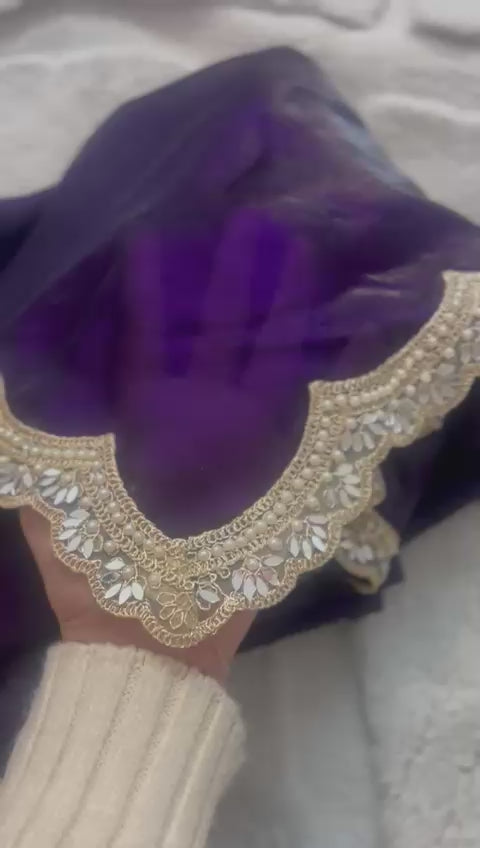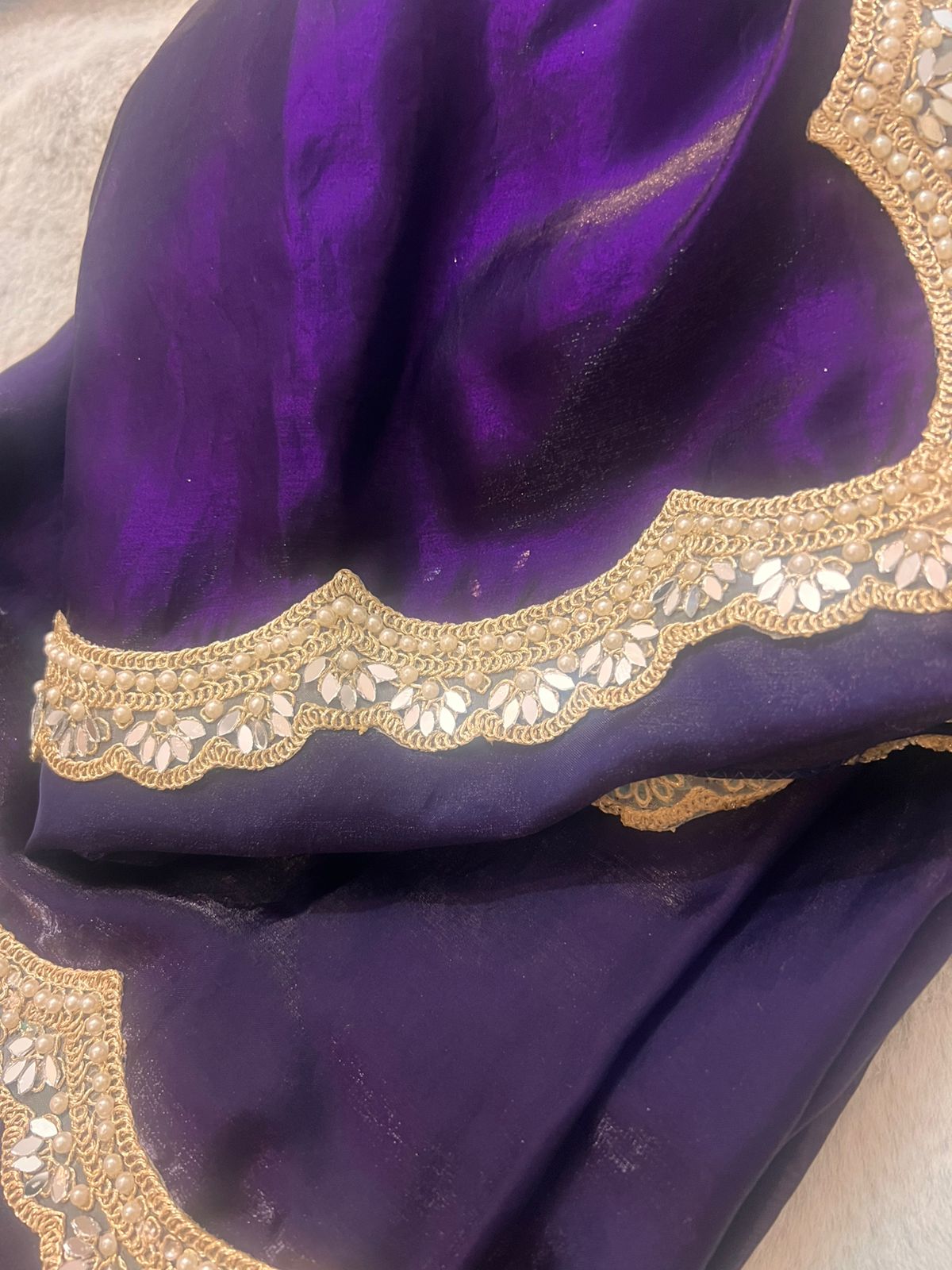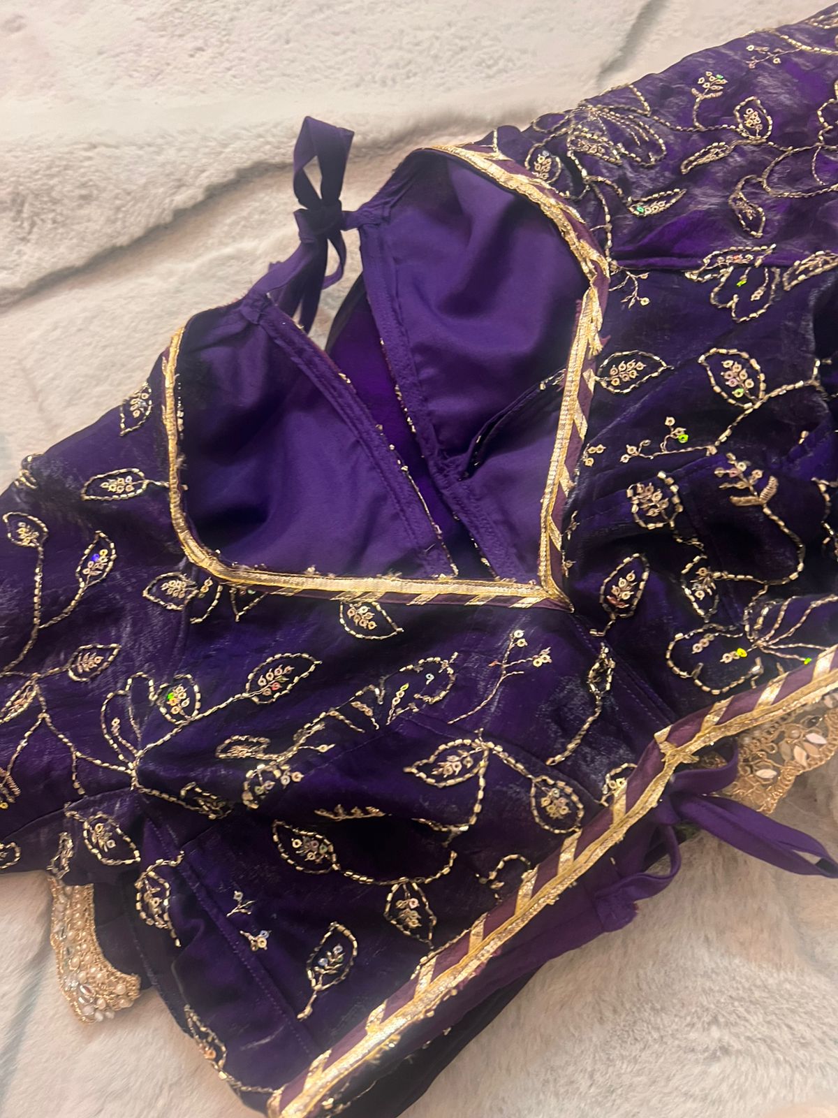 Purple Fendy Tissue Silk Designer Sari with Fendy Tissue Silk Designer Kaanchli Blouse