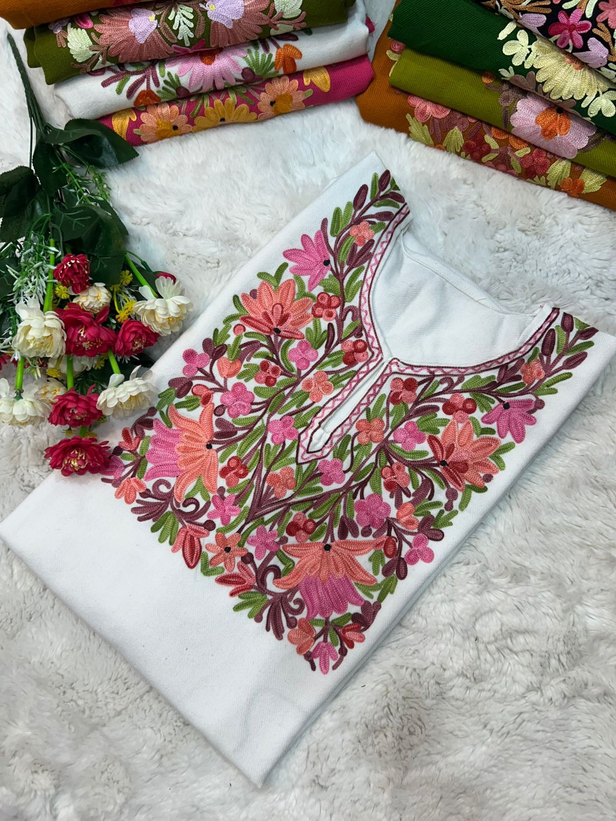 Presenting super Cashmilon wool Ariwork Pheran with beautiful colours 🌸