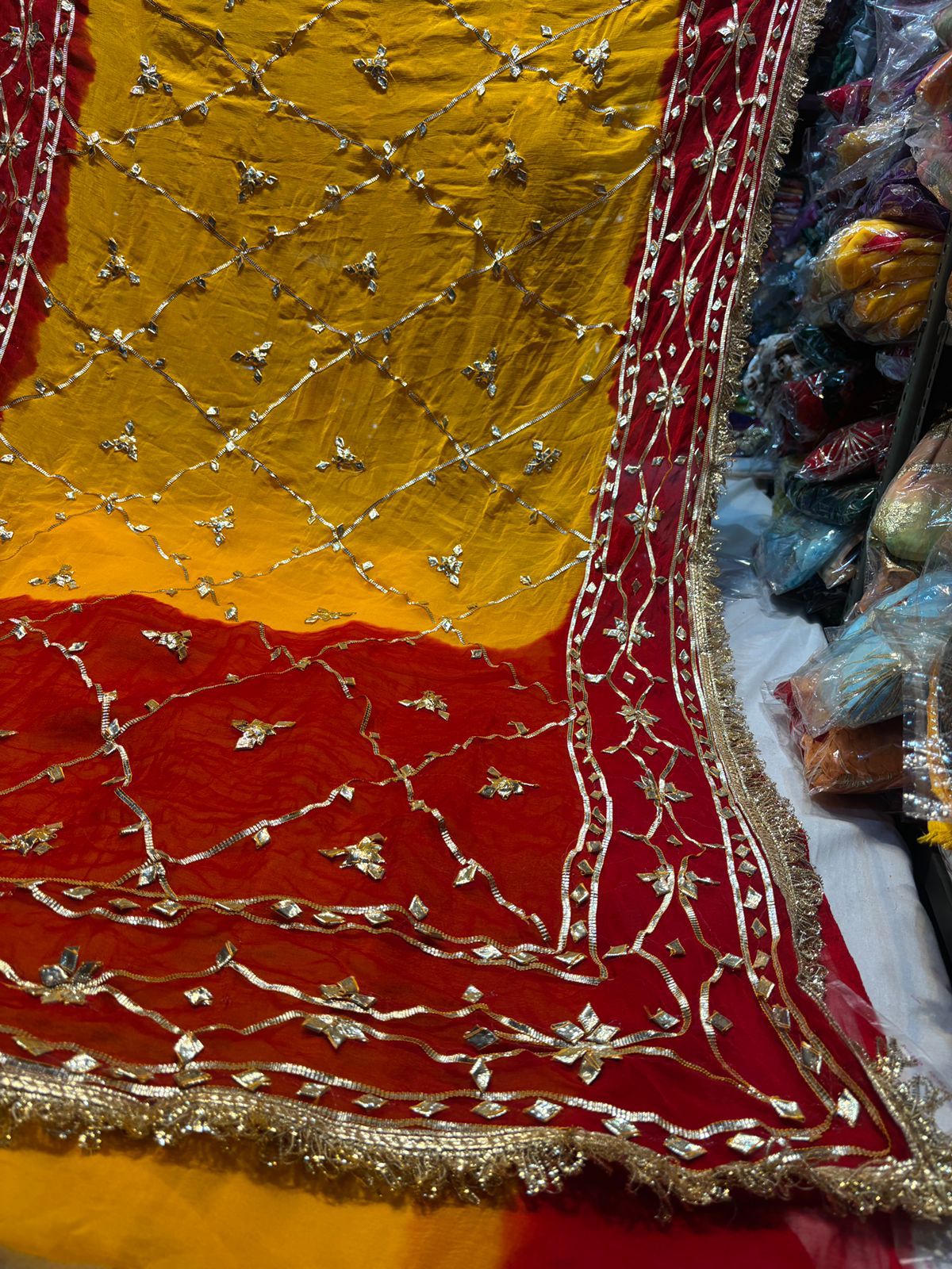 Yellow and Red Gota Zaal Handwork Work Saree