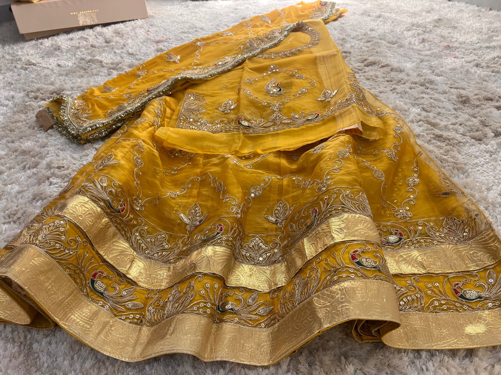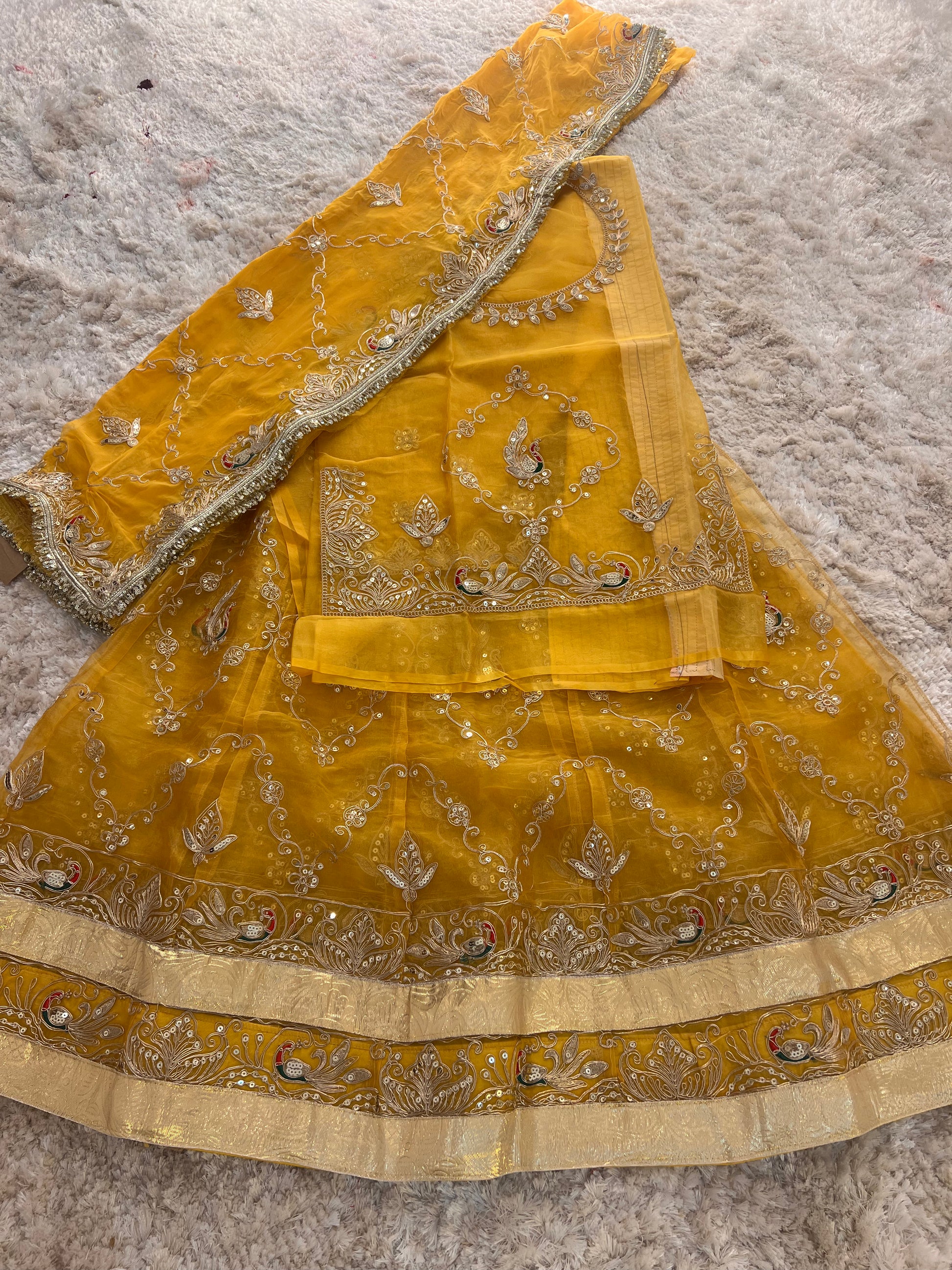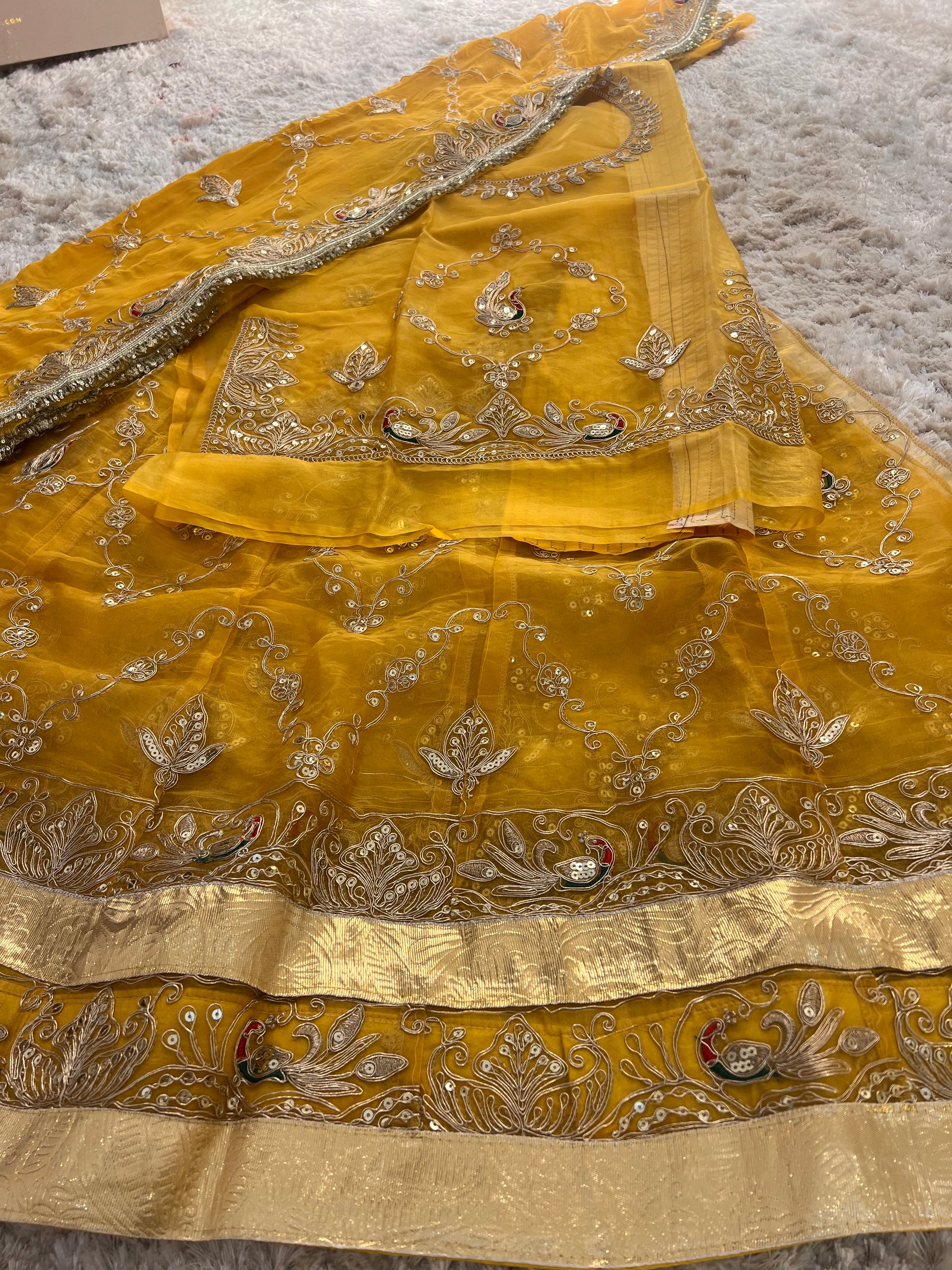 Yellow Tissue Fandy Poshak with Baarik Kadhayi